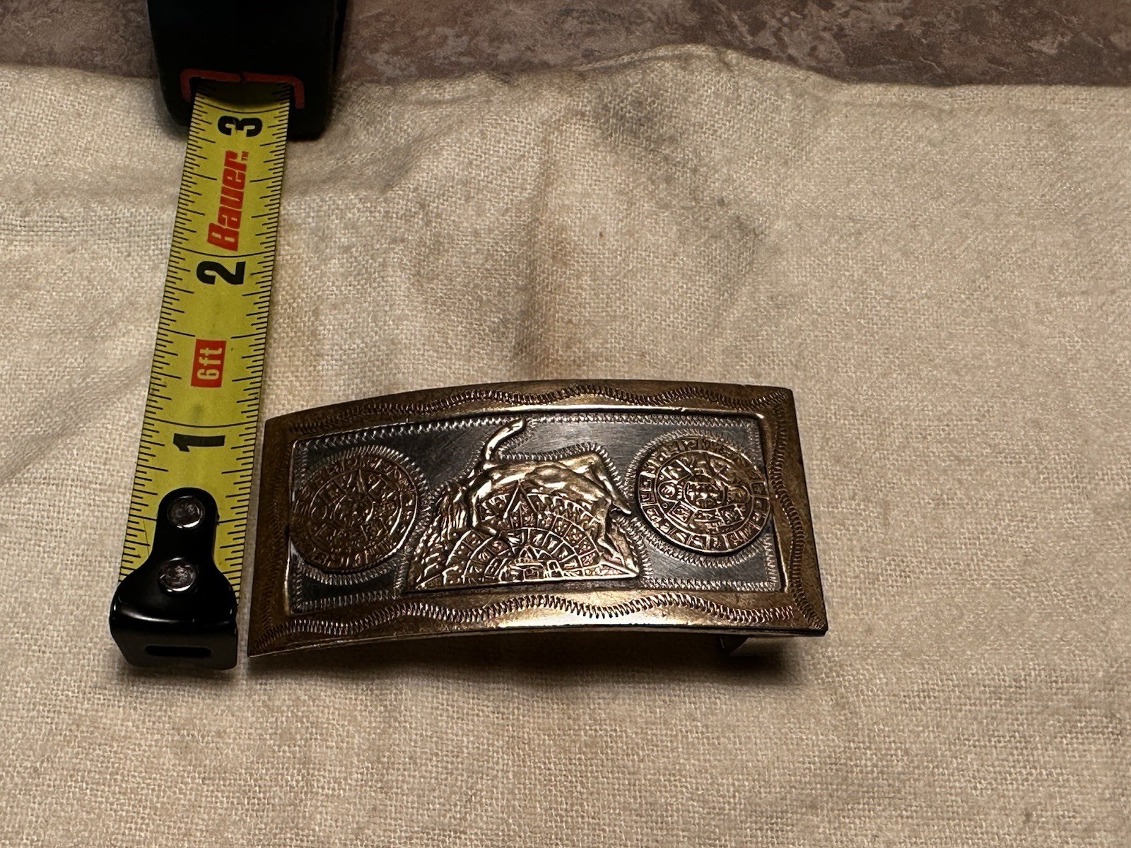 как выглядит ANTIQUE 1940s Mayan Sterling Silver 925 Made in Mexico J.V Belt Buckle RARE FIND фото