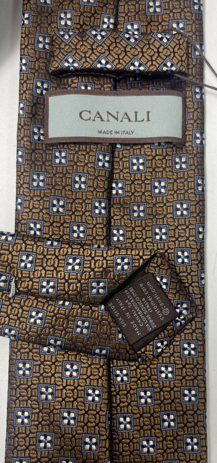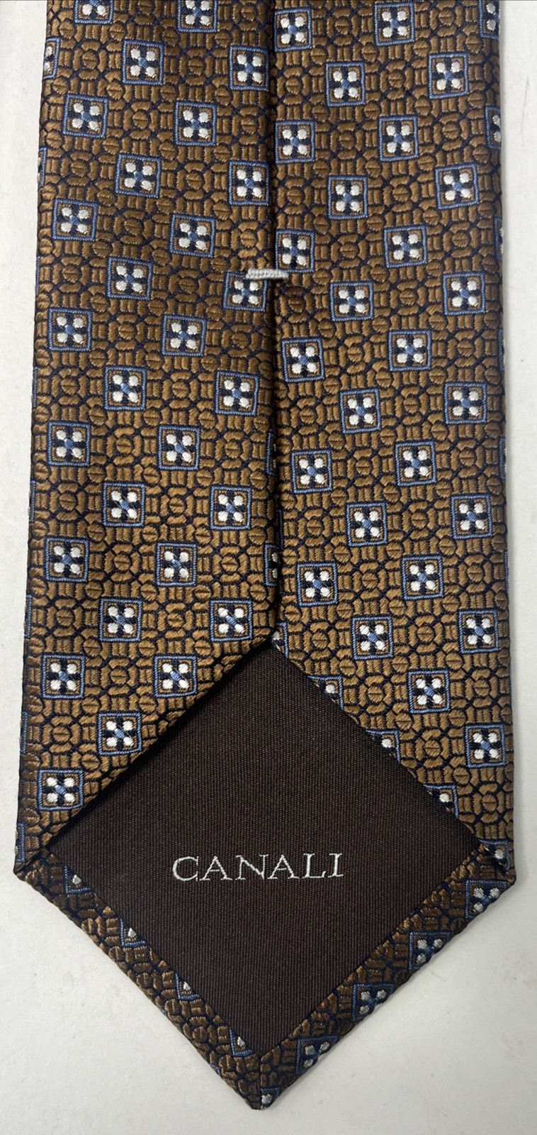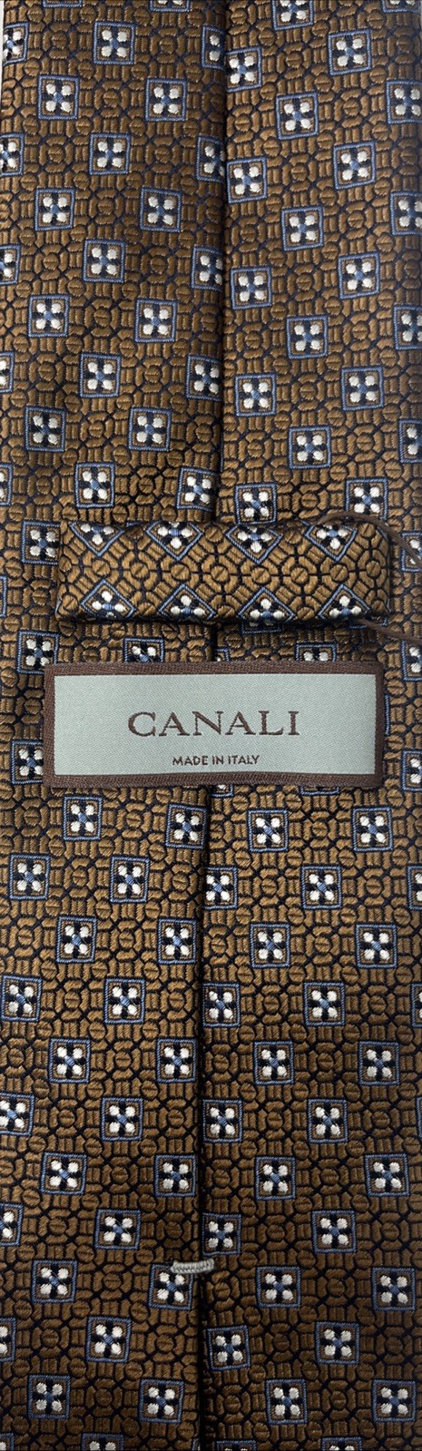 Canali Small Medallion Brown Silk Tie Made In Italy 58x3.25 NWT
