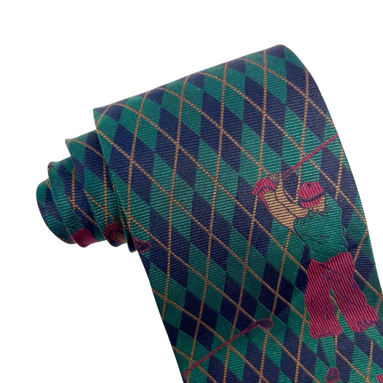как выглядит Polo Ralph Lauren Mens Vtg Tie Argyle Golfers Green/Navy Silk 3 7/8" x 56" euc фото