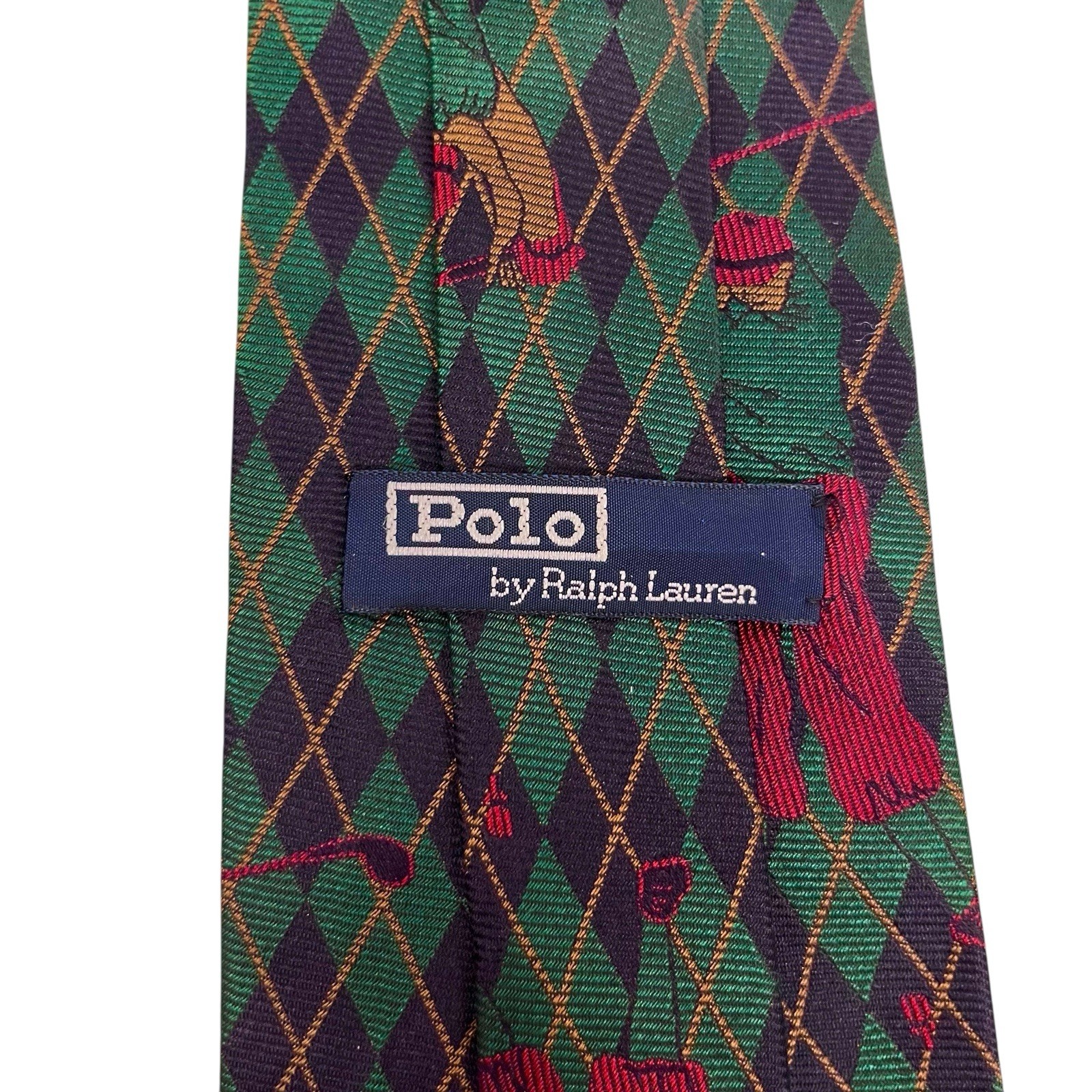 Polo Ralph Lauren Men's Vtg Tie Argyle Golfers Green/Navy Silk 3 7/8 x 56 euc