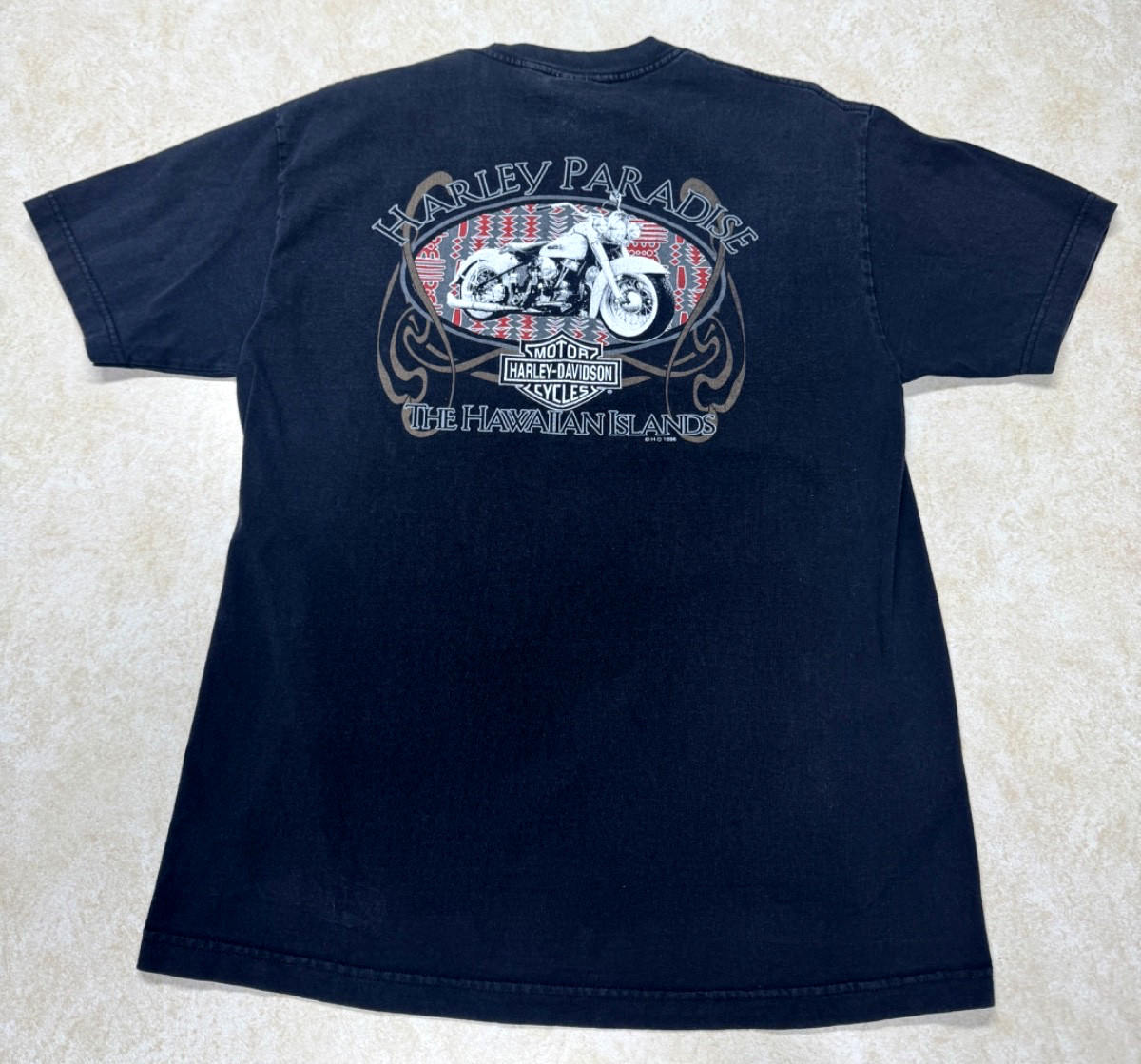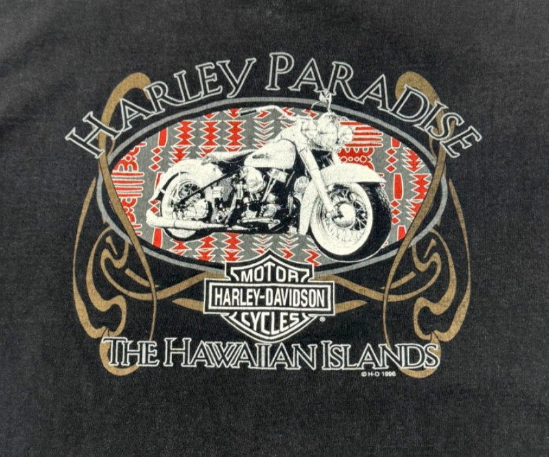 как выглядит MENS HARLEY-DAVIDSON T-SHIRT - MAUI / HAWAIIAN ISLANDS LOGO - SIZE L - 1996 фото