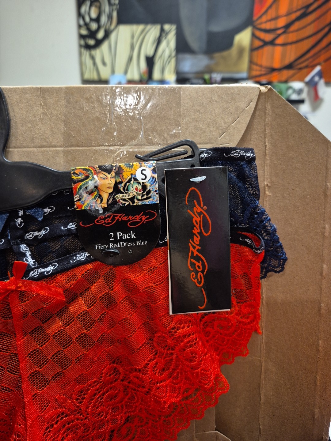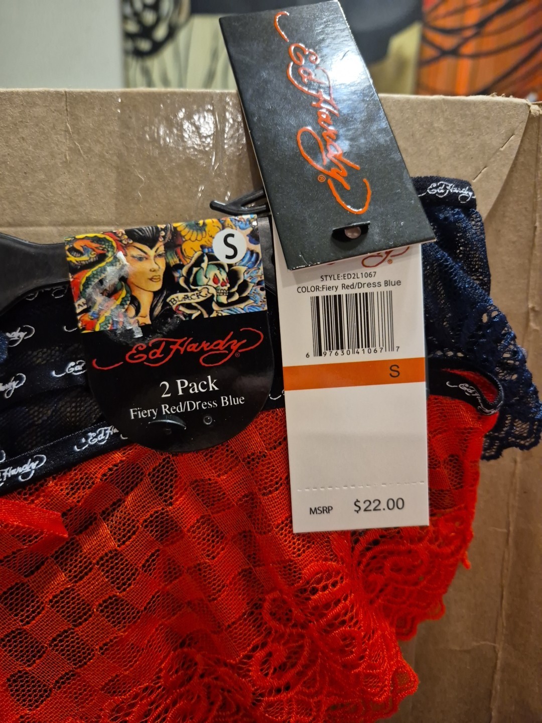 2 Pack Ed Hardy Lace Panties Size Small, Fiery Red Dress Blue, NWT