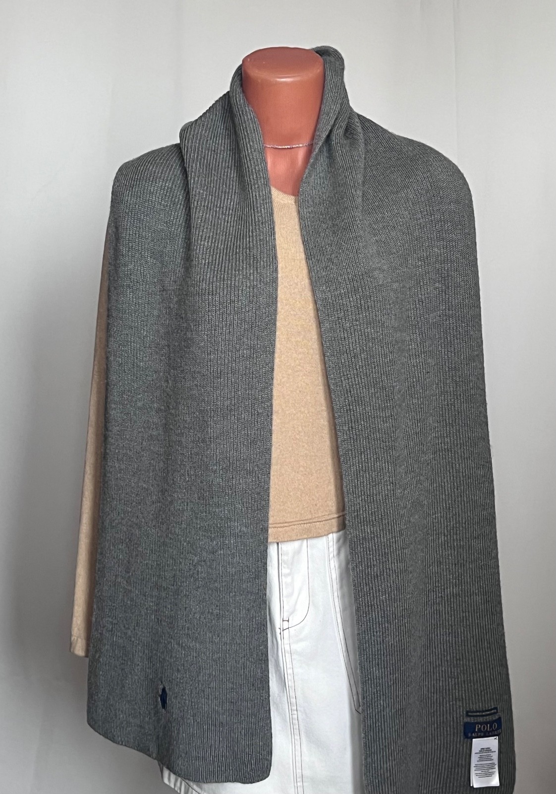 как выглядит Polo Ralph Lauren Merino Wool Scarf Grey фото