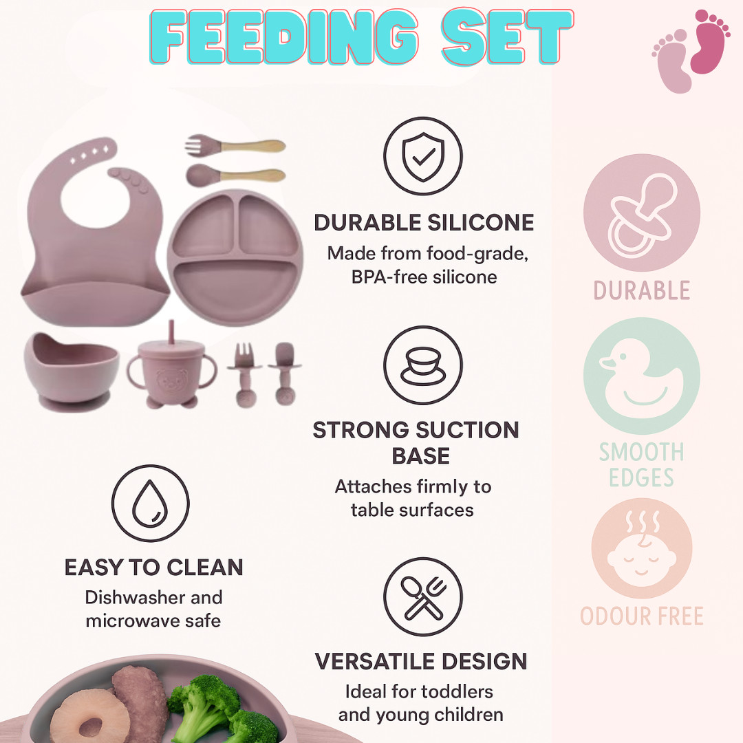 BPA Free Baby Silicone Feeding Set Plate Bib Cup Spoon Fork Bowl Toddler