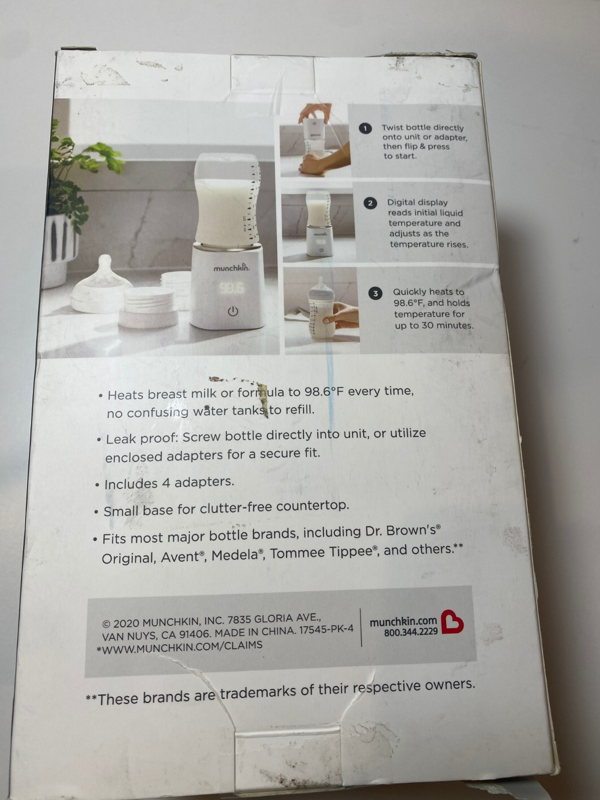 Munchkin 98 Digital Bottle Warmer Plug-in Four Adapters Fits Most Baby Bottles