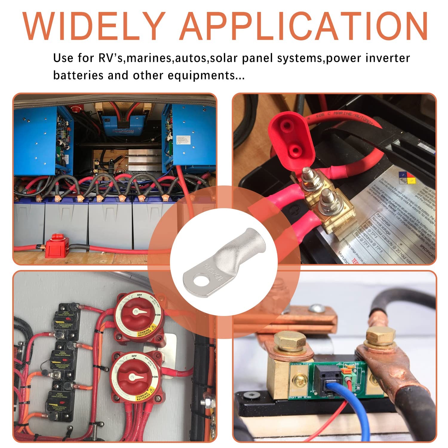 как выглядит 10pcs 1/0 AWG-5/16 M8 Tinned Copper Ring Terminals Battery Lugs, Heavy Duty ... фото