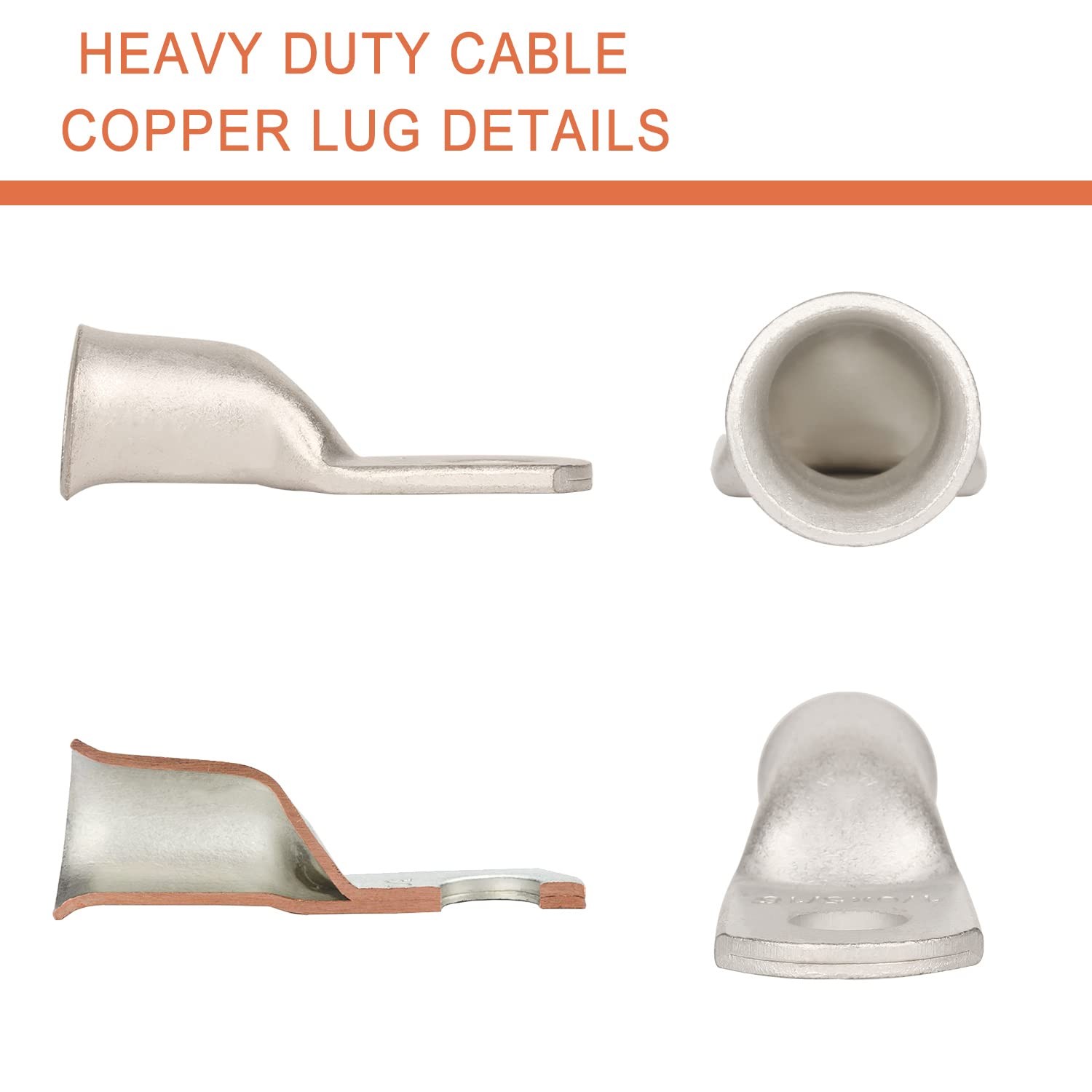 10pcs 1/0 AWG-5/16 M8 Tinned Copper Ring Terminals Battery Lugs, Heavy Duty ...