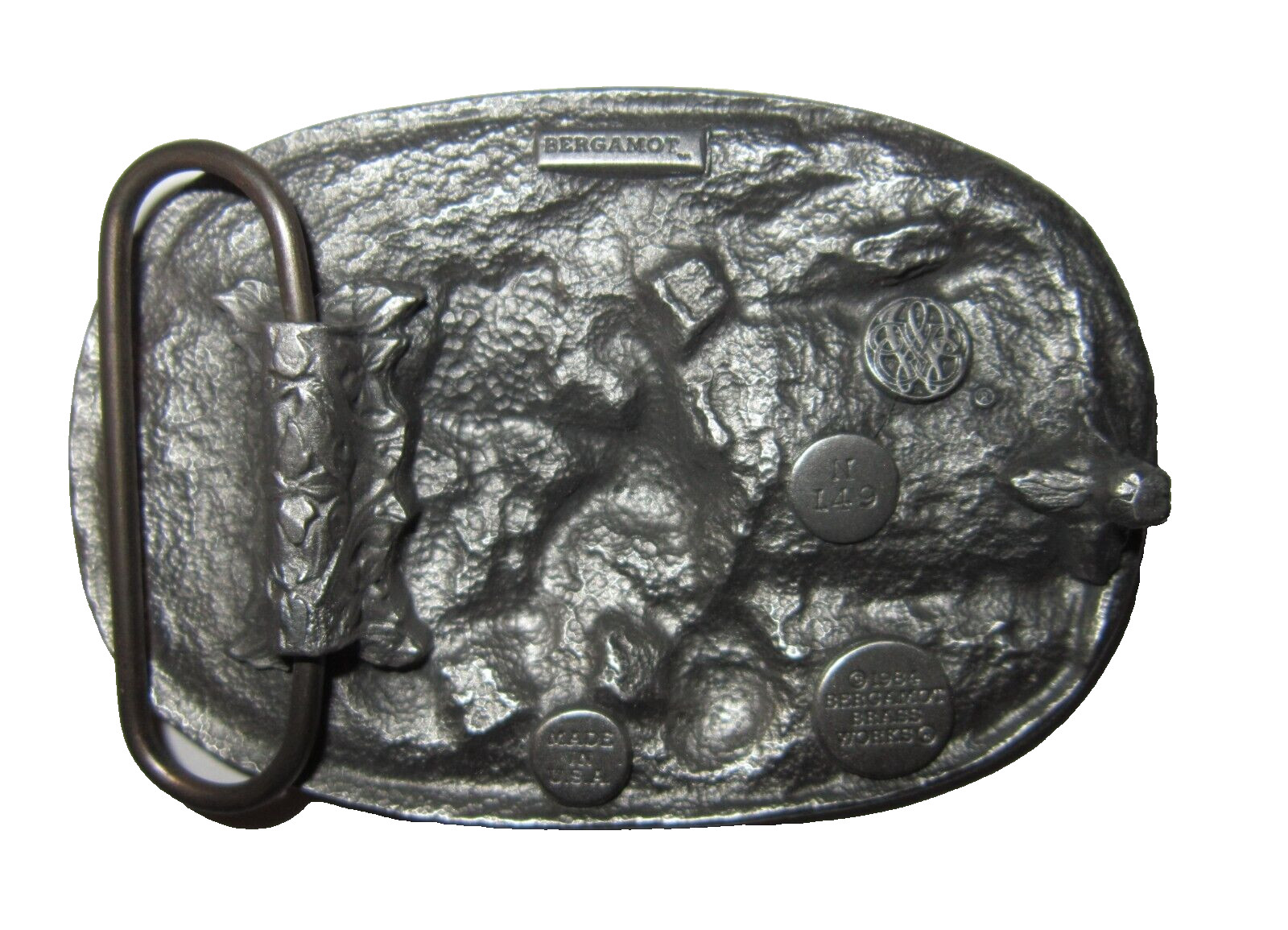 как выглядит Bergamot Brass Works 1984 Mens Belt Buckle Motorcycle Engraved Riding USA фото