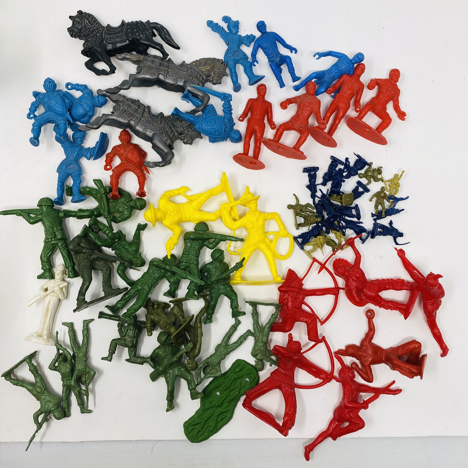 Vintage 1960s Mixed Plastic Army Men Cowboys Indians Lido MPC Tim-Mee Britains