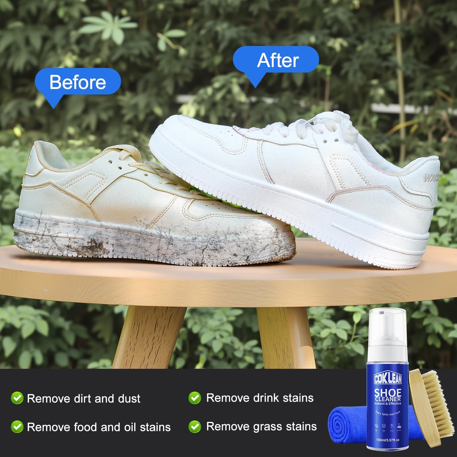 White Sneaker Cleaner Kit Foam Brush Solution for Tennis Running Golf PU Nubuck