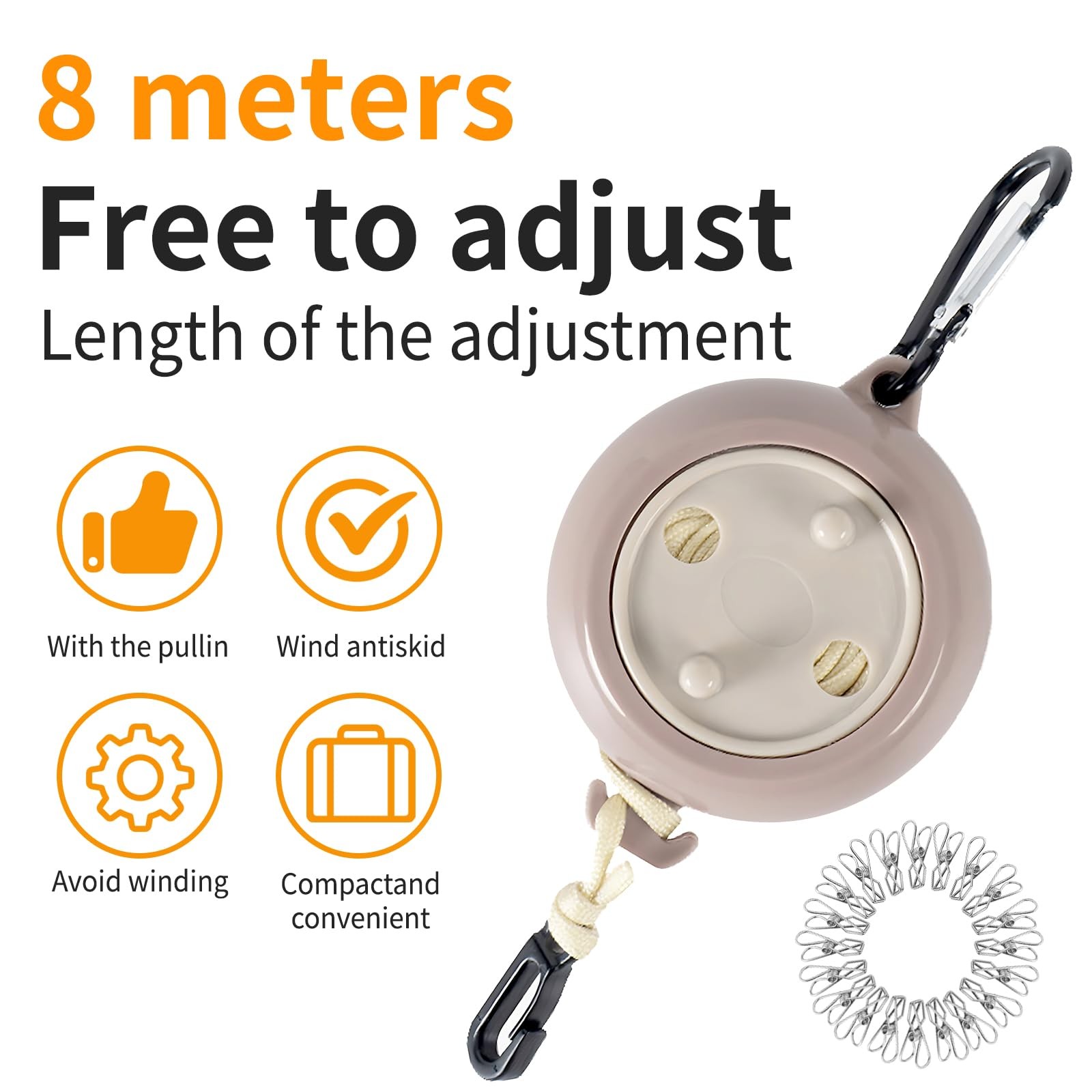 33 ft Adjustable Portable Travel Clothesline Rope, Camping Laundry Drying Cord