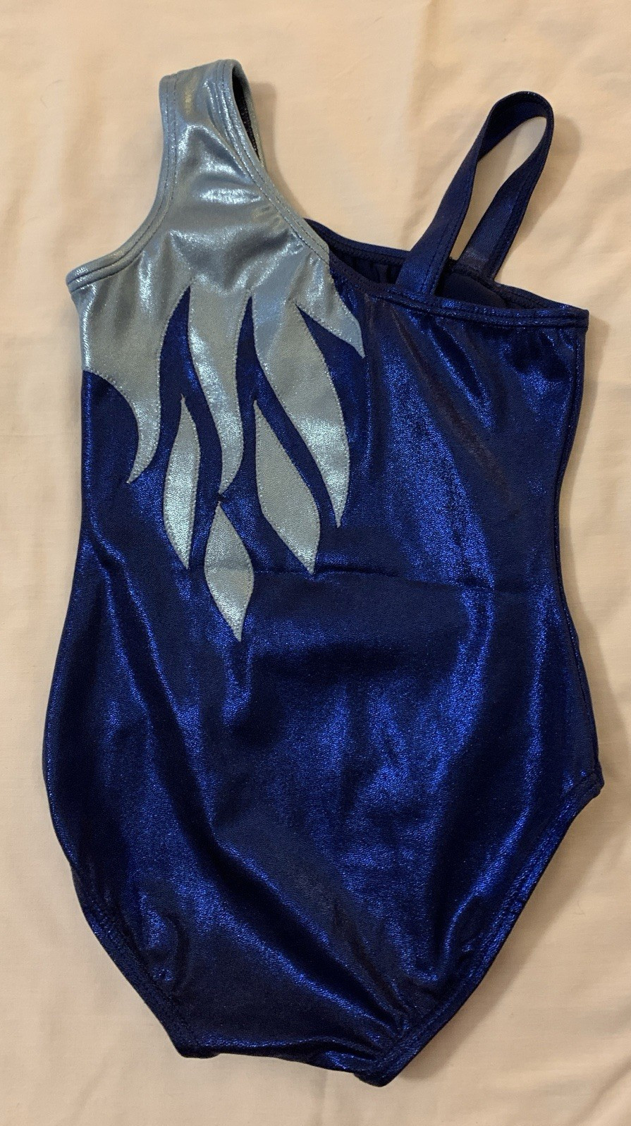 Balera Rhinestone Contrast Flame Swirl Leotard Childs Size SC Navy Royal