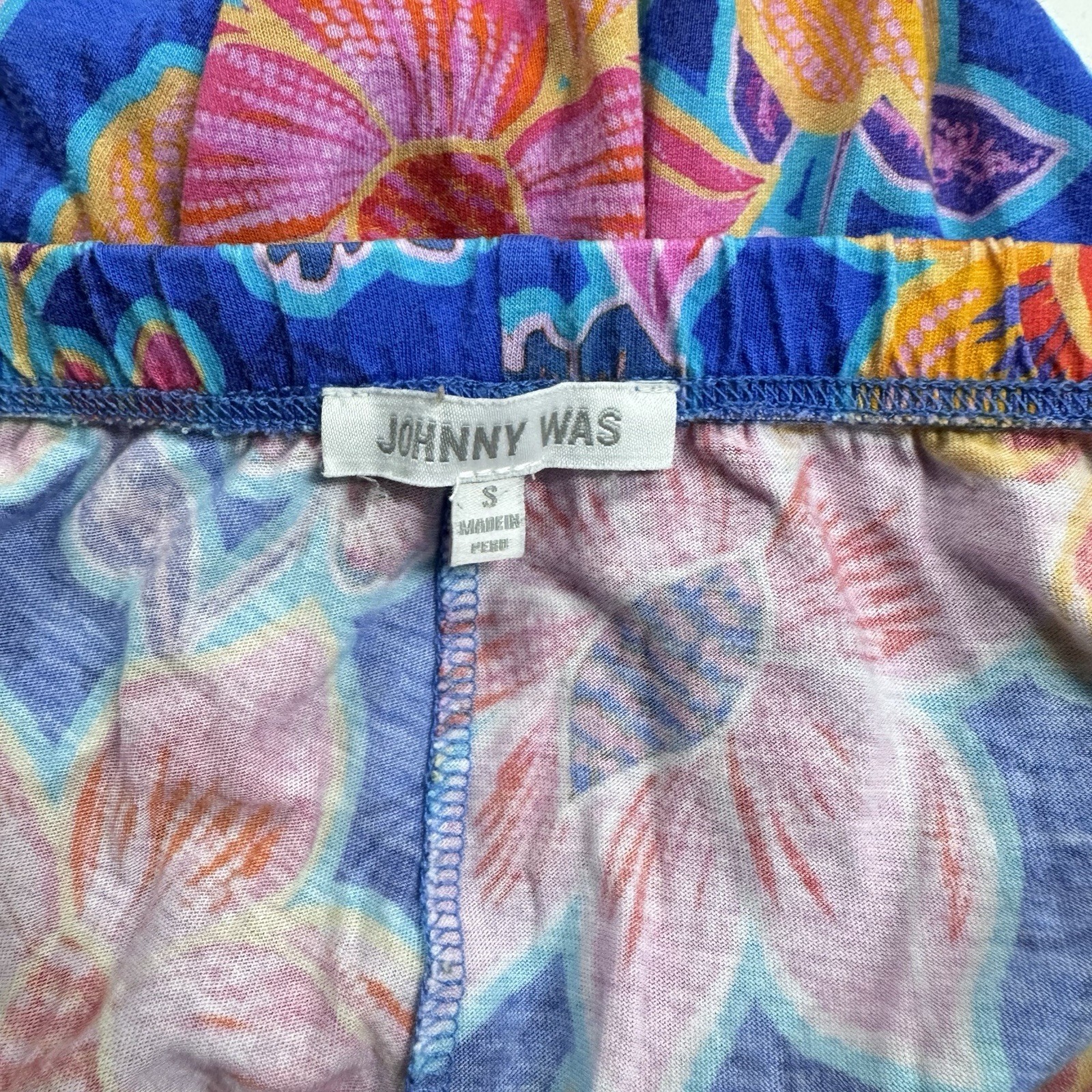 Johnny Was Carly Pajama Set Sz S Daniela Blue Floral Soft 3/4 Sleeve Button READ
