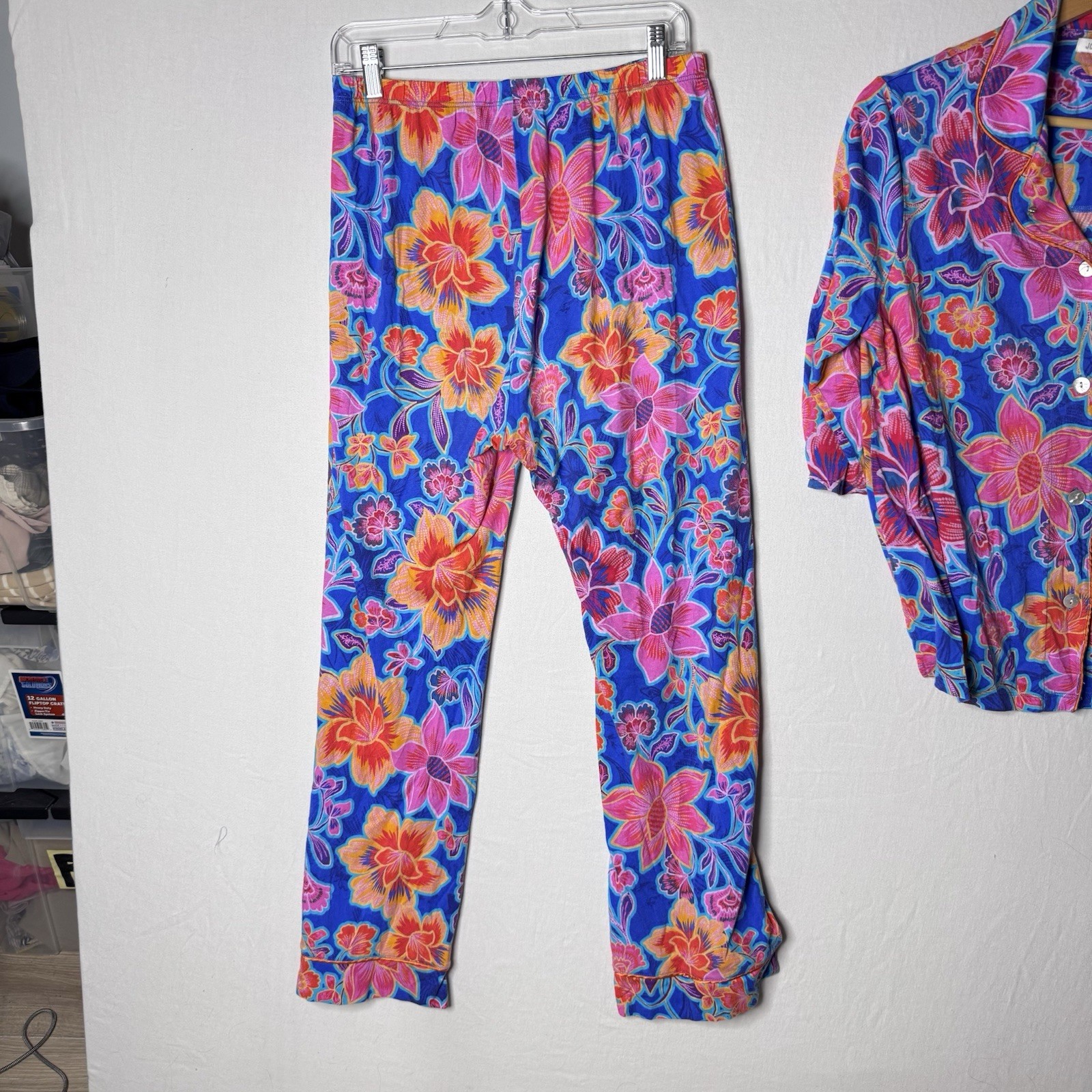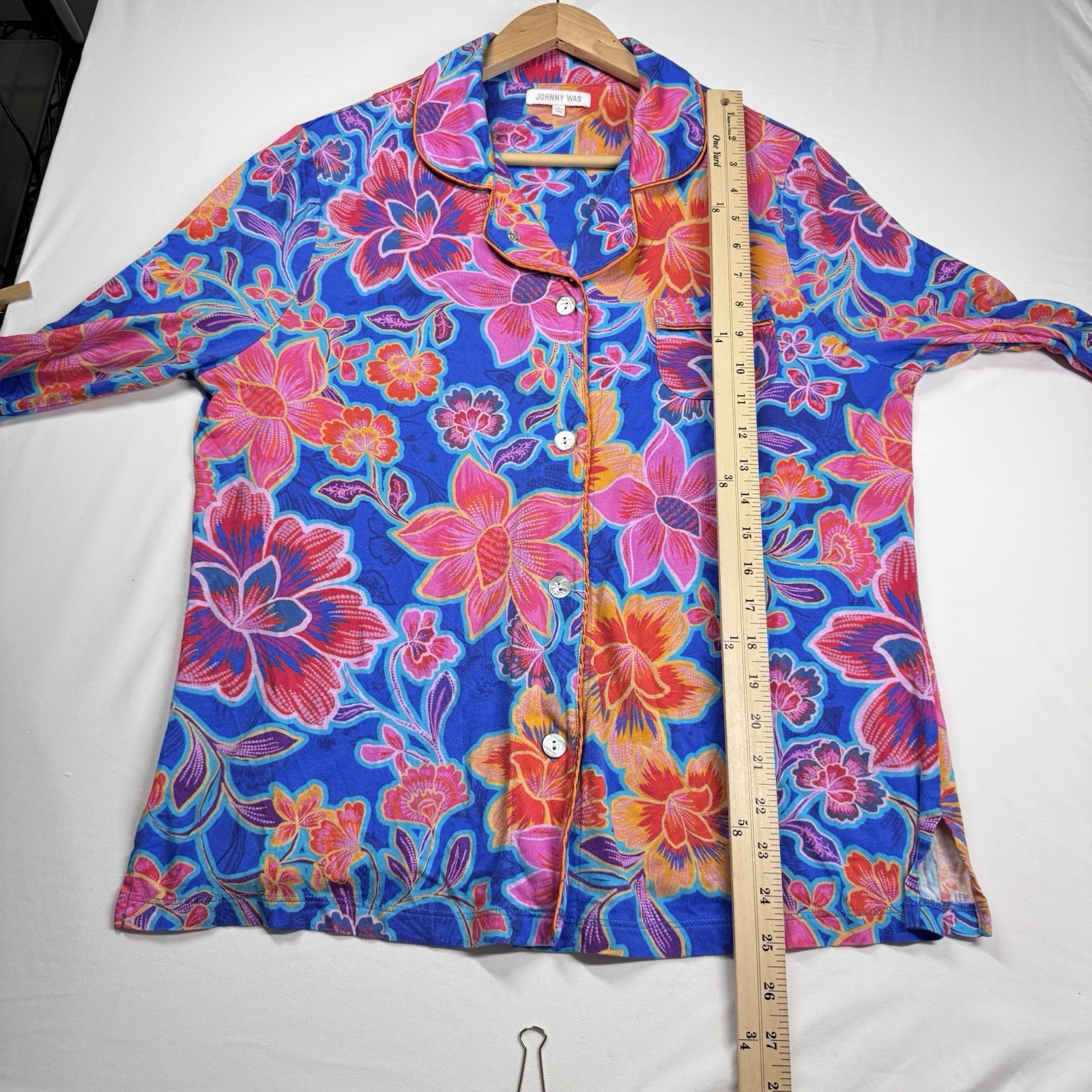 как выглядит Johnny Was Carly Pajama Set Sz S Daniela Blue Floral Soft 3/4 Sleeve Button READ фото