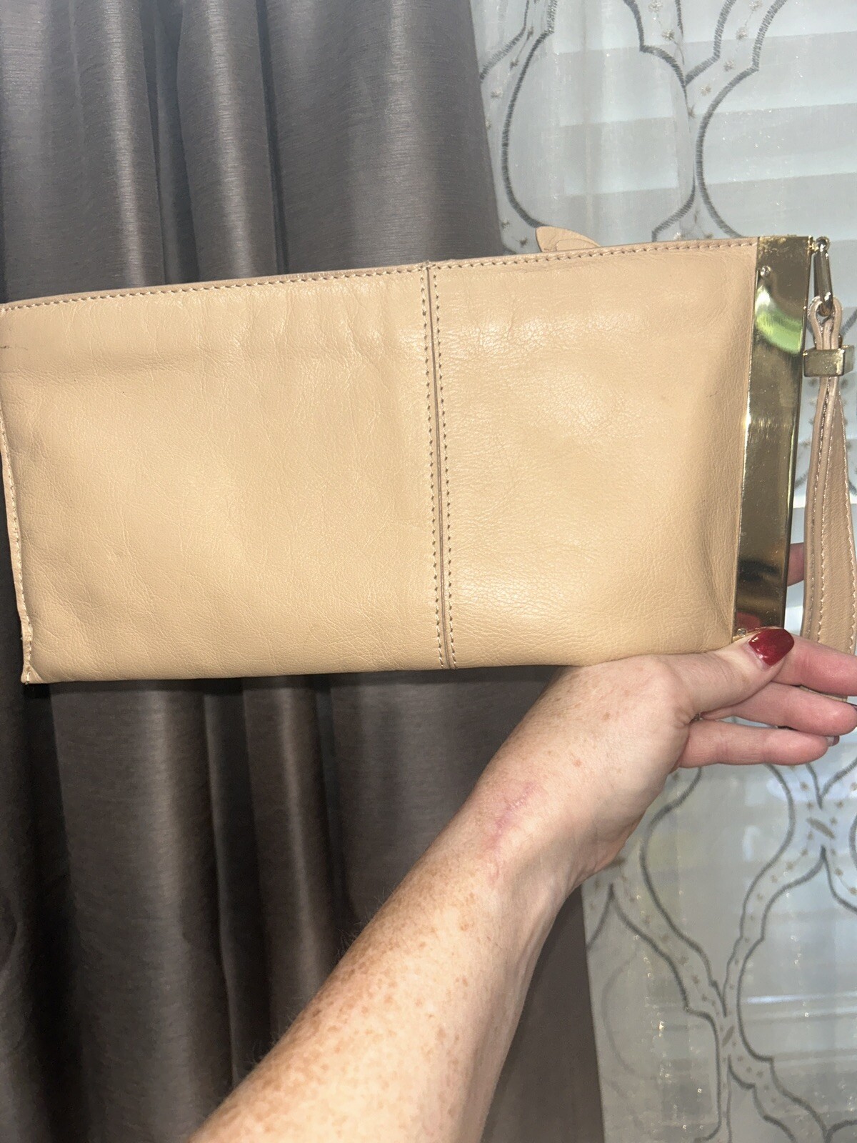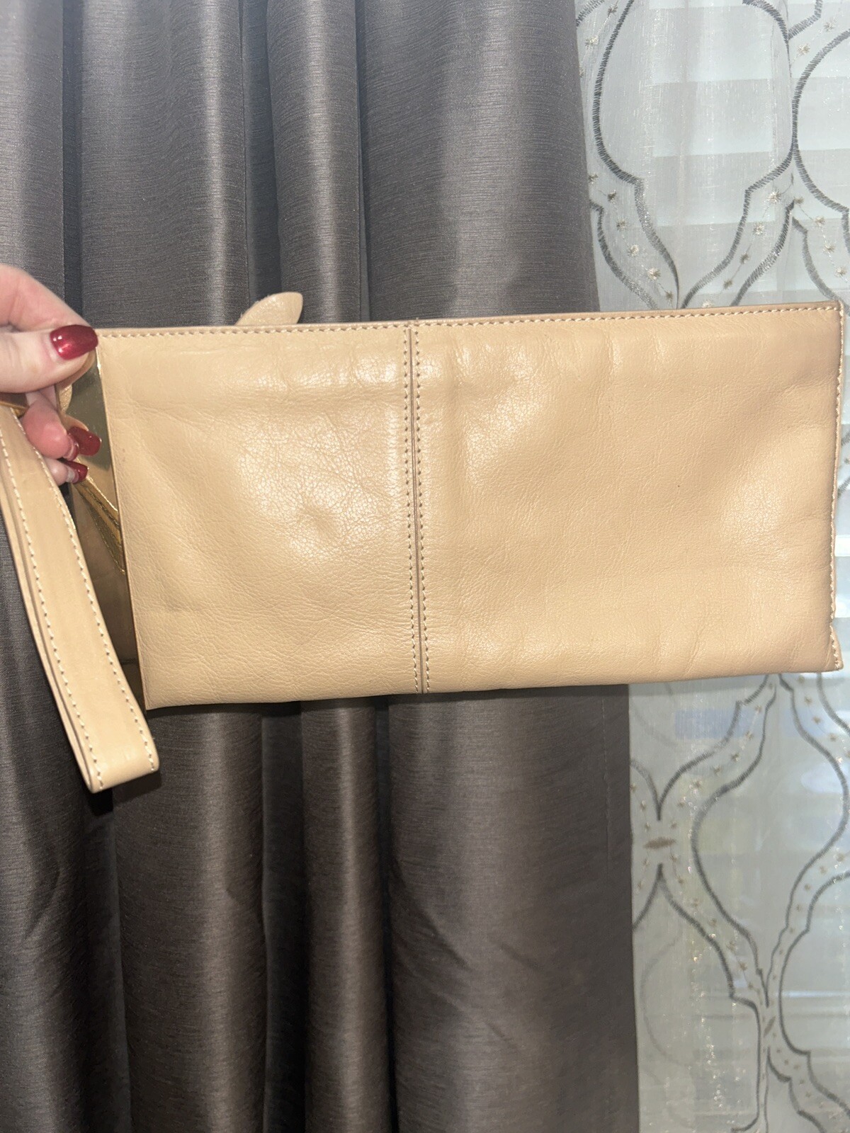 как выглядит Vintage 1980 s Alberta Di Canio Leather Clutch Wristlet Evening Tan Gold фото