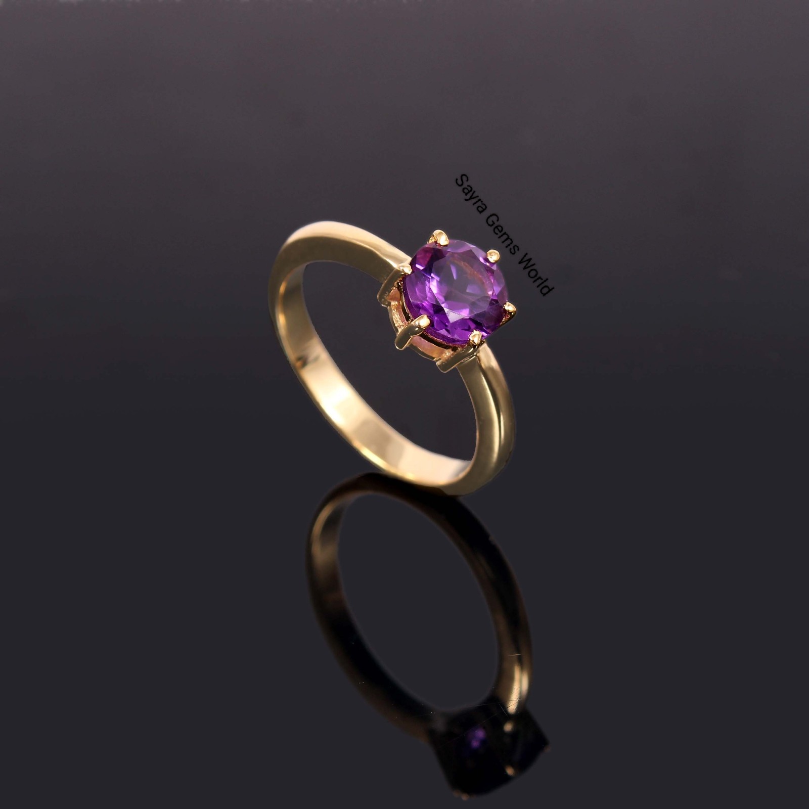 Vintage Sterling Silver Round cut Natural Amethyst Ring, 7 mm Amethyst Ring