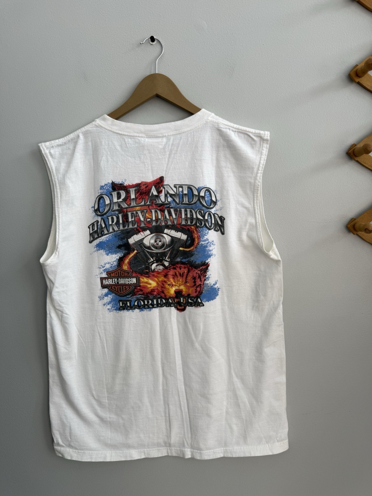 как выглядит Vintage Harley Davidson Sleeveless Graphic Print Muscle Shirt Sz L Orlando FL фото
