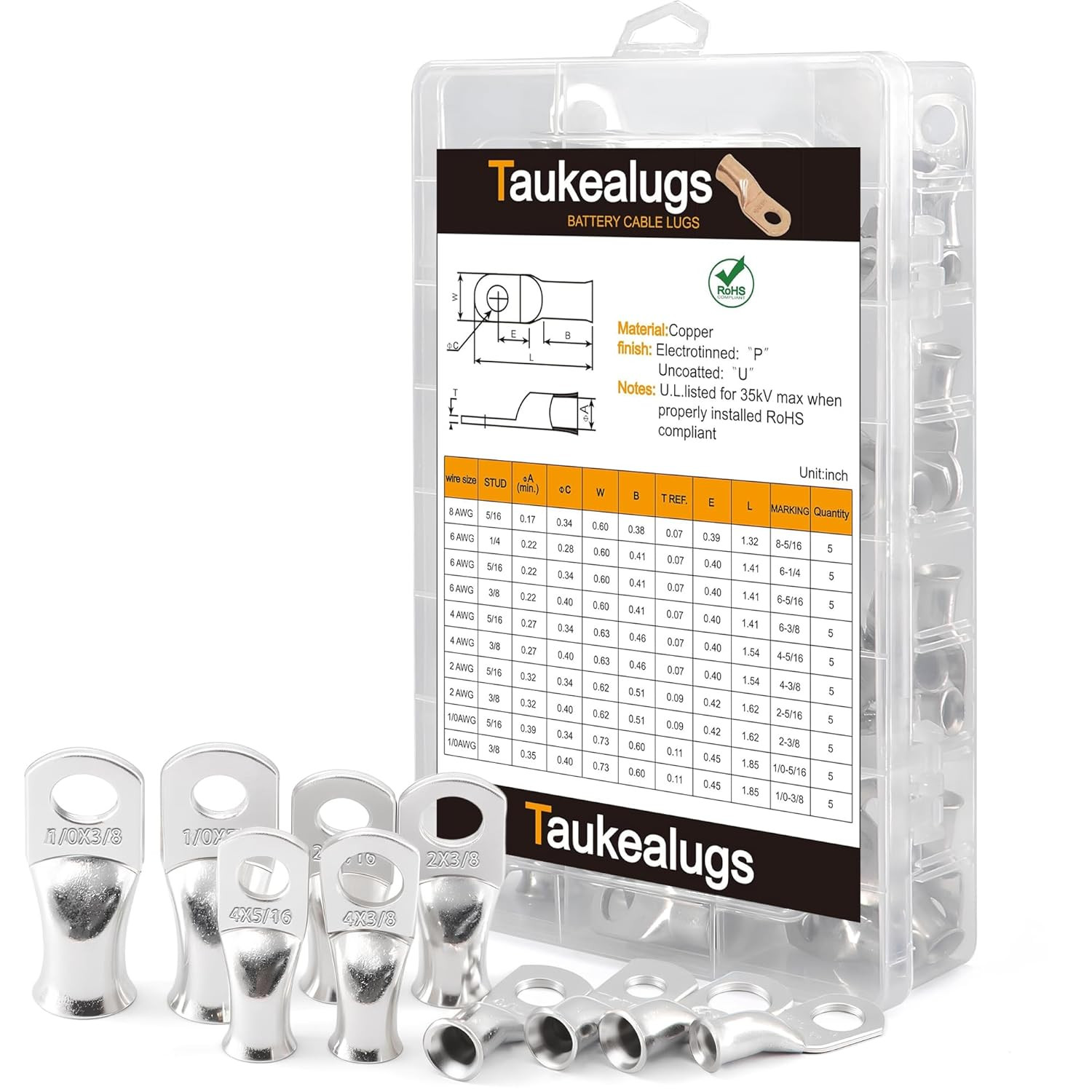 Battery Cable Ends Terminal Connectors Wire Copper Lugs Assortment Kit AWG