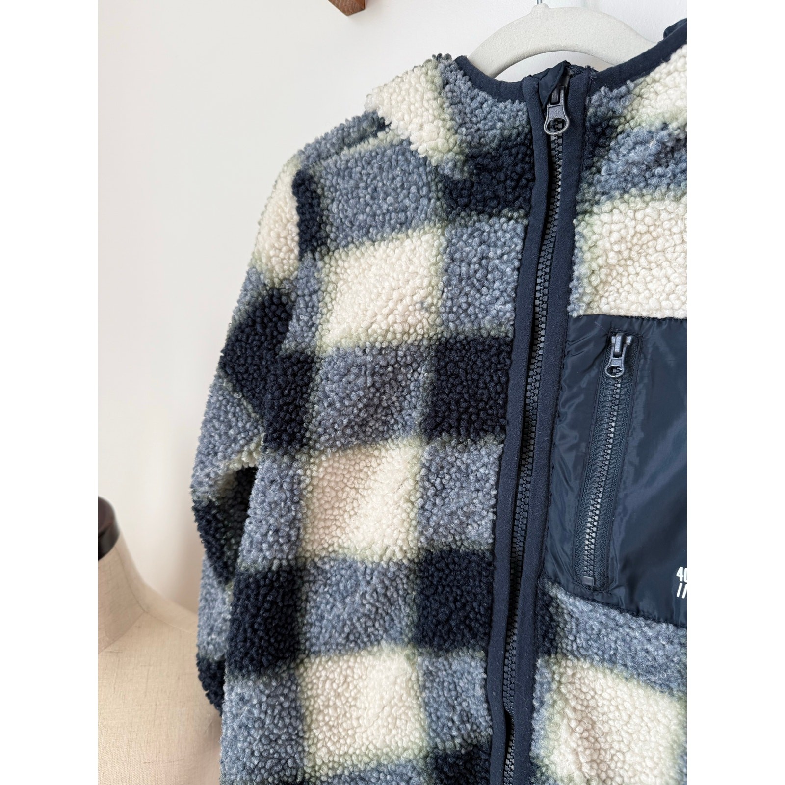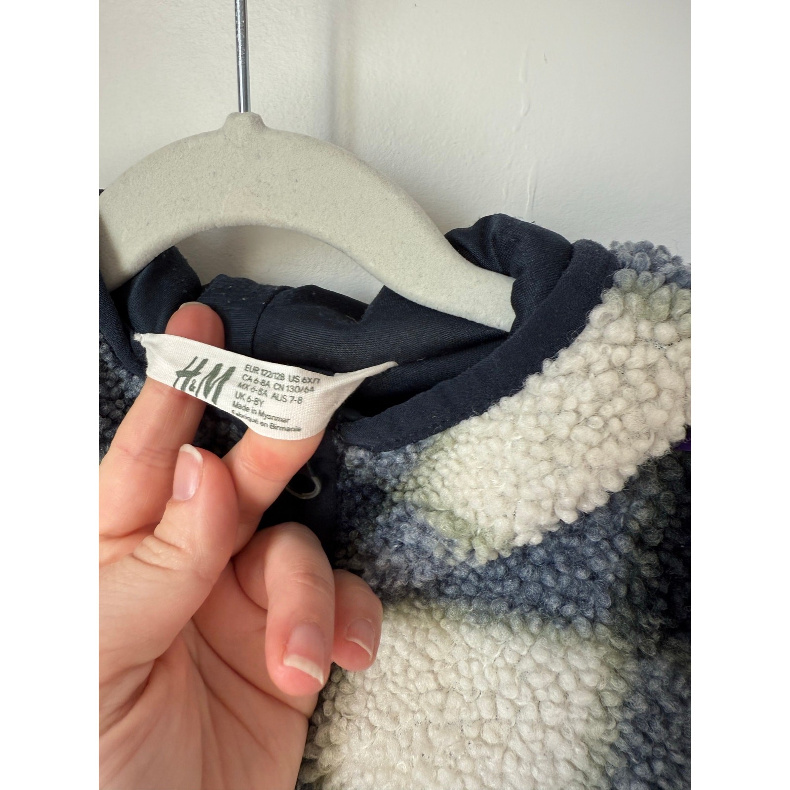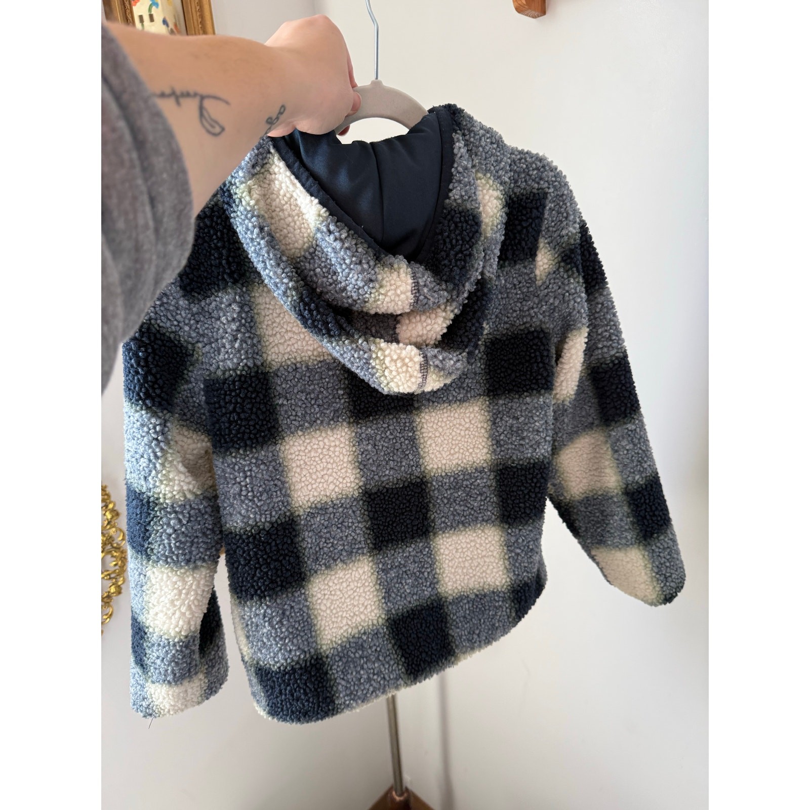 как выглядит H M blue black plaid sherpa jacket - 6X/7 фото