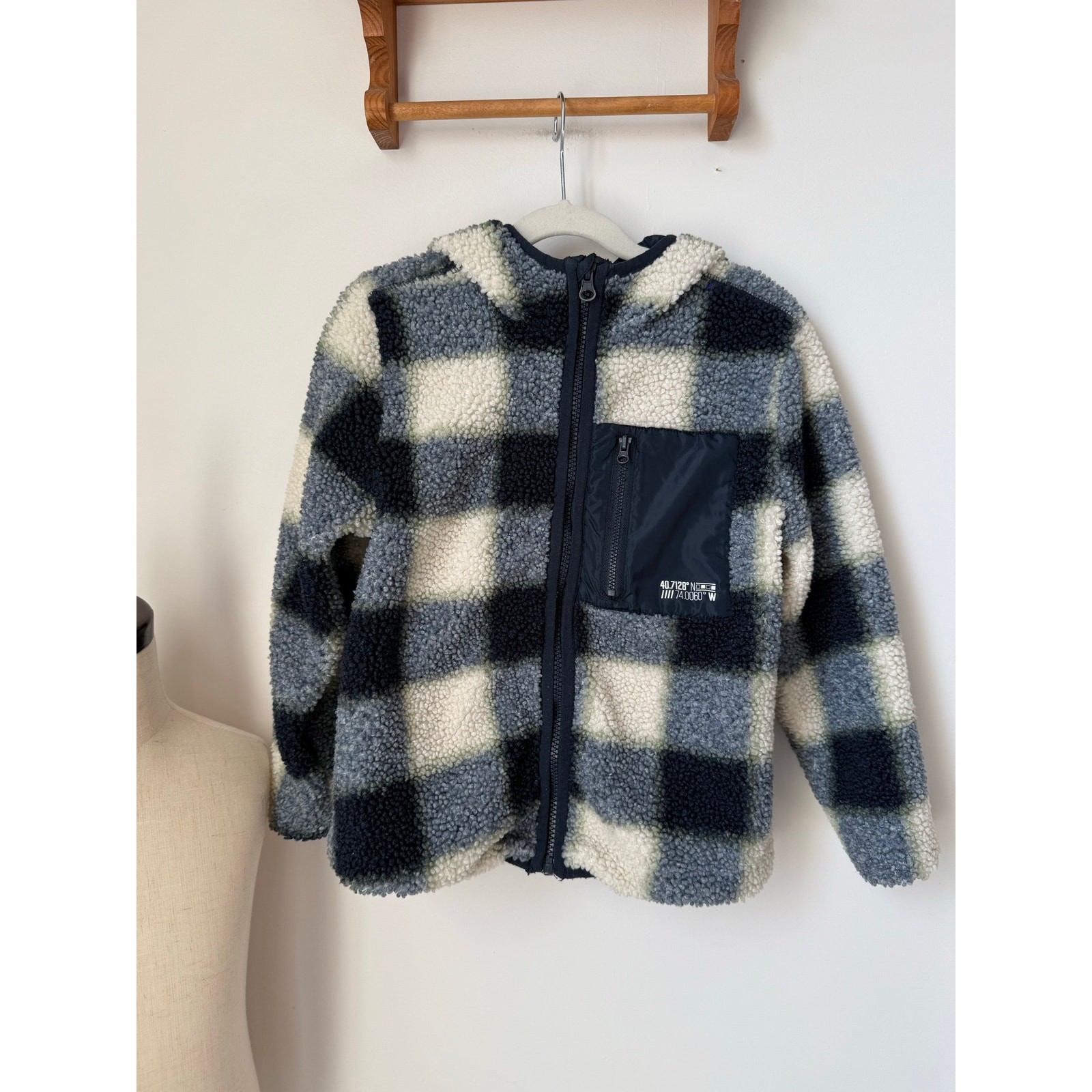 H M blue black plaid sherpa jacket - 6X/7