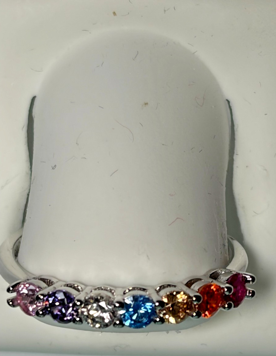 как выглядит 925 Sterling Silver Multi-Colored Cubic Zirconia Stone Ring, Size 8 1/2" фото