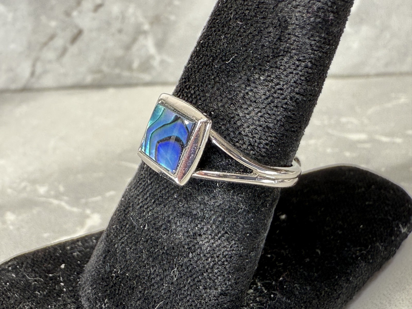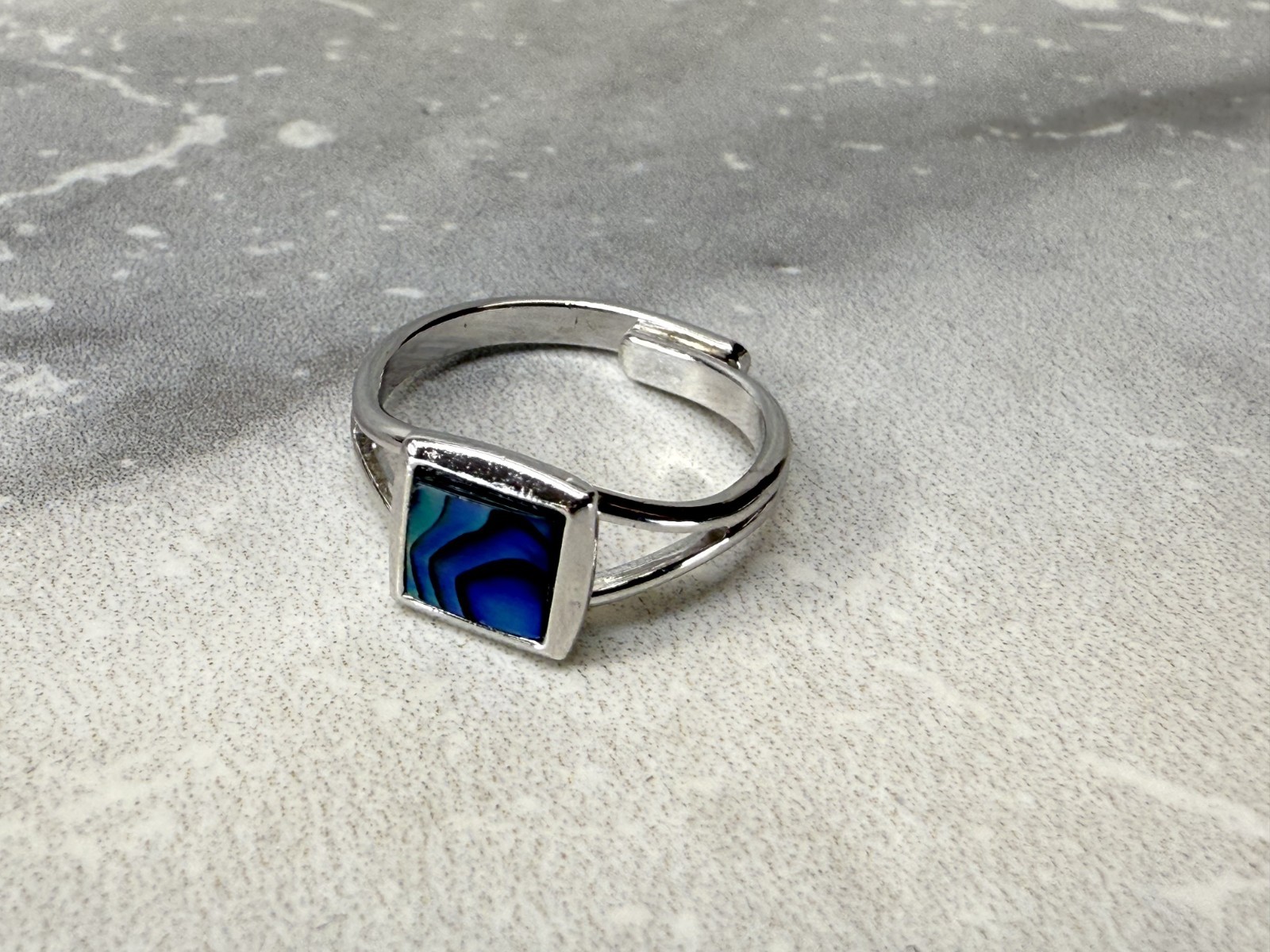 Vintage Silver Tone Abalone Ring Size 6 Adjustable