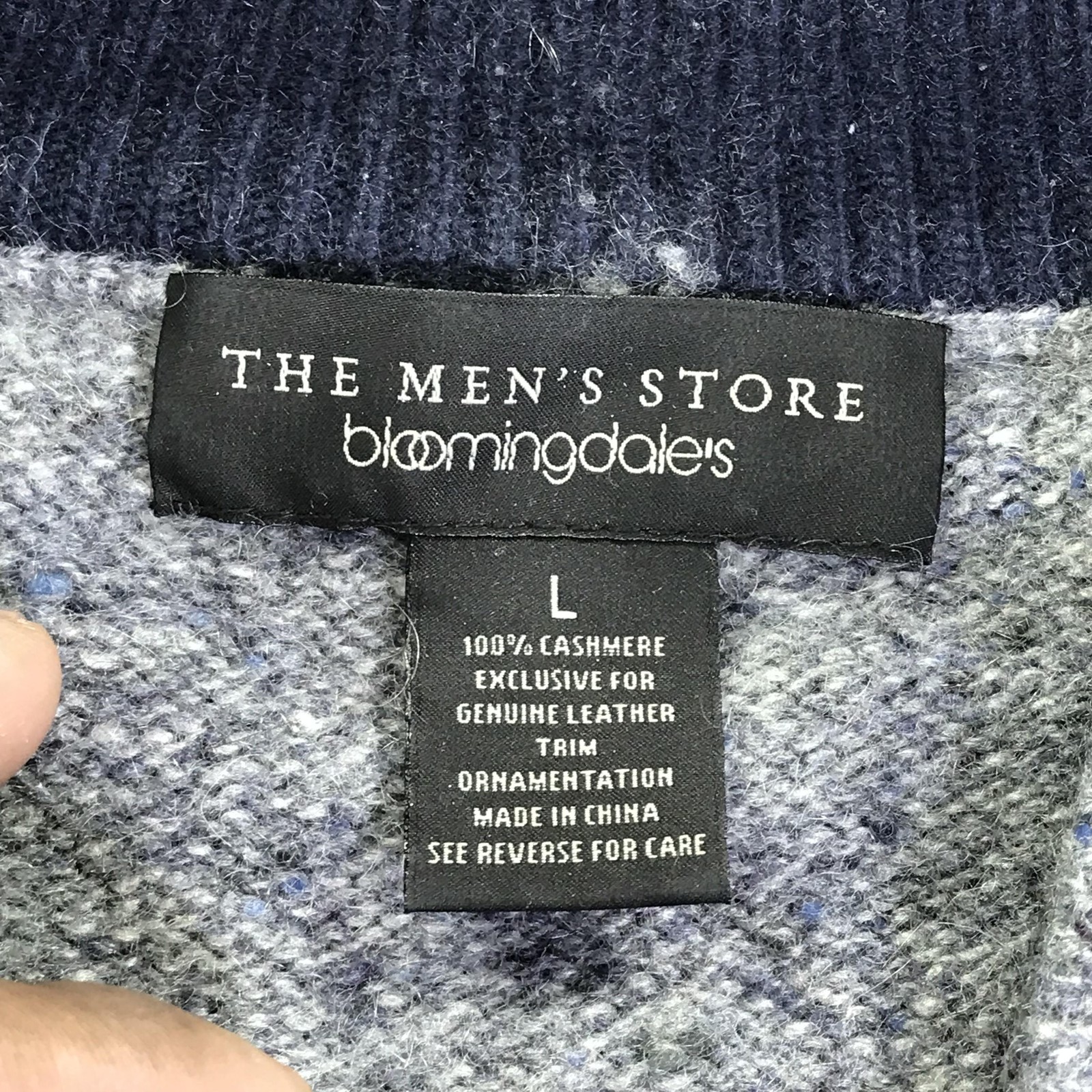 Bloomingdale's Sweater Mens Large Gray 100 Cashmere 1/4 Zip Mock Neck Pullover