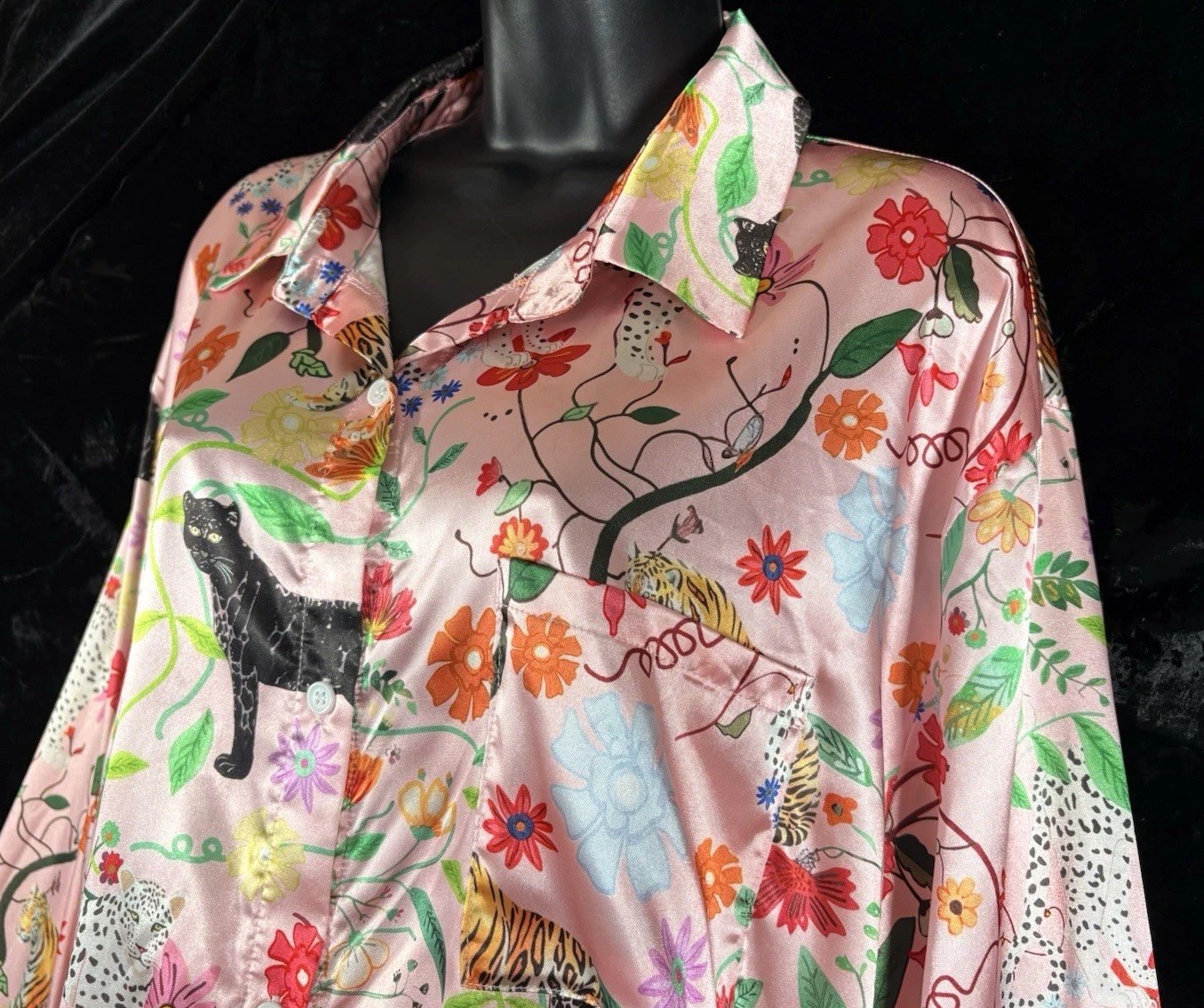 как выглядит Tiger Black Leopard Pajama Set Ekouaer Women s PJs Shirt Pants Sleepwear 2XL фото