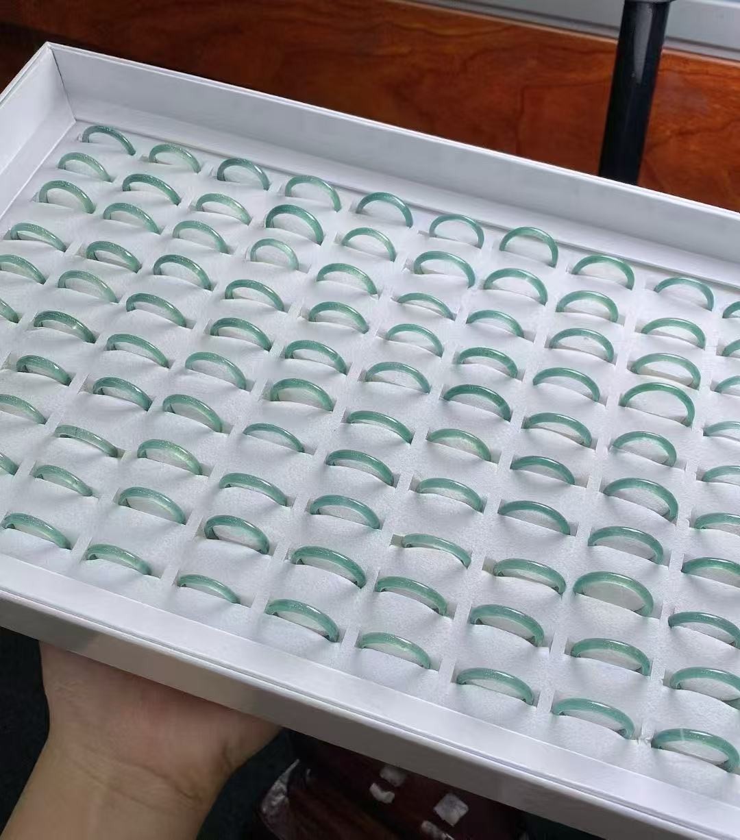 • Natural Ice Type A Burmese Jadeite Ring Sky Blue Water Slim Band Unisex