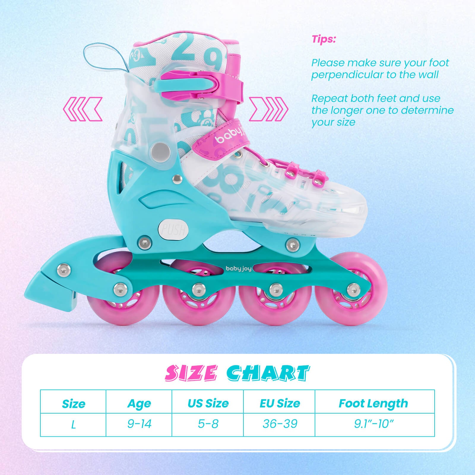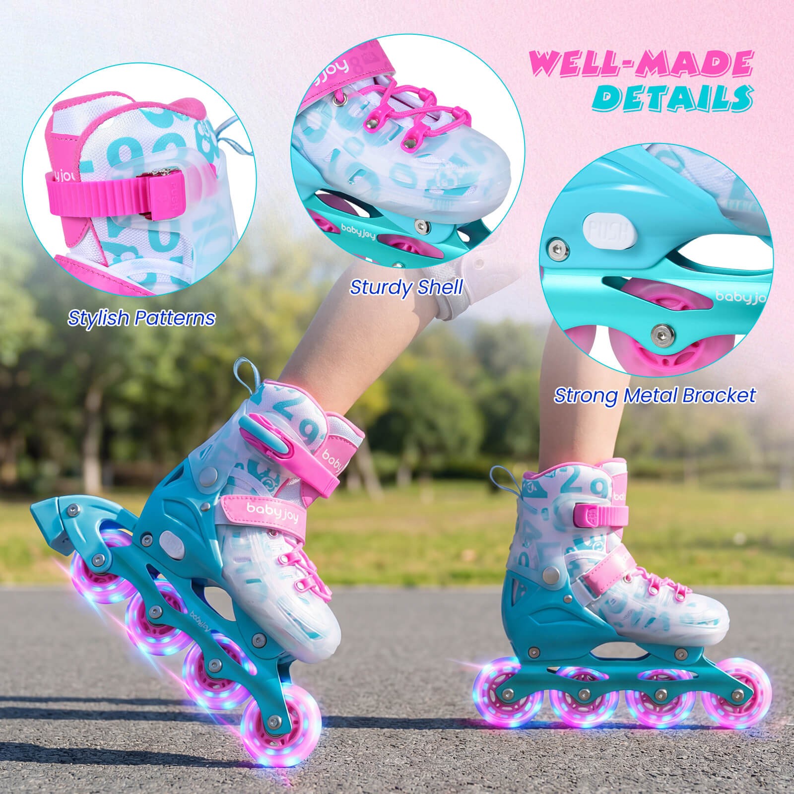 как выглядит Kids Inline Skates w/Light Up Wheels Safety Protection for Beginners Ages 9-14 фото