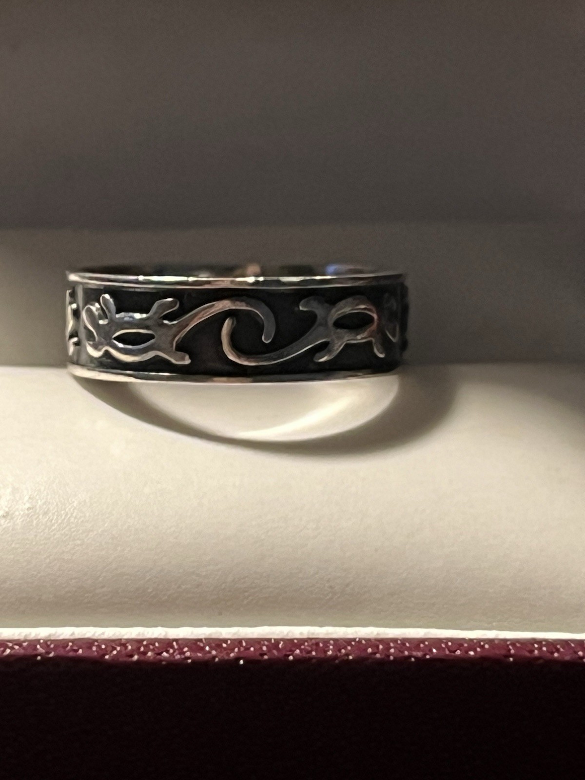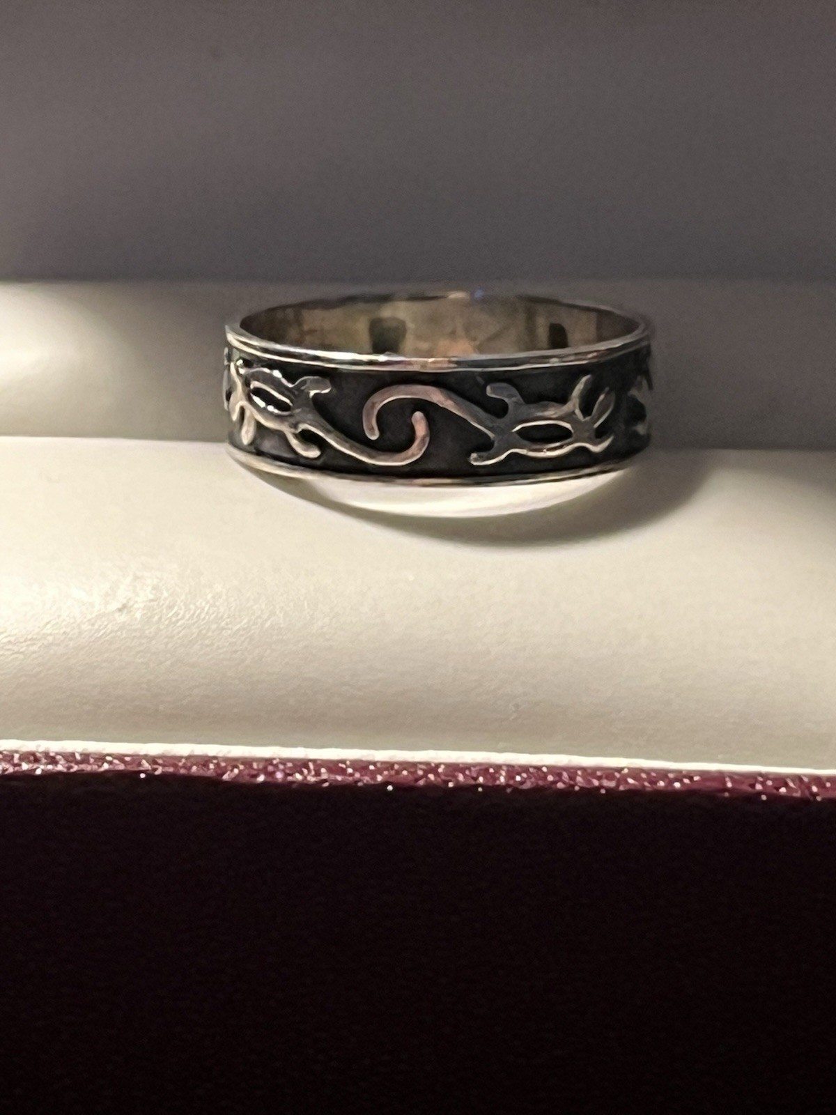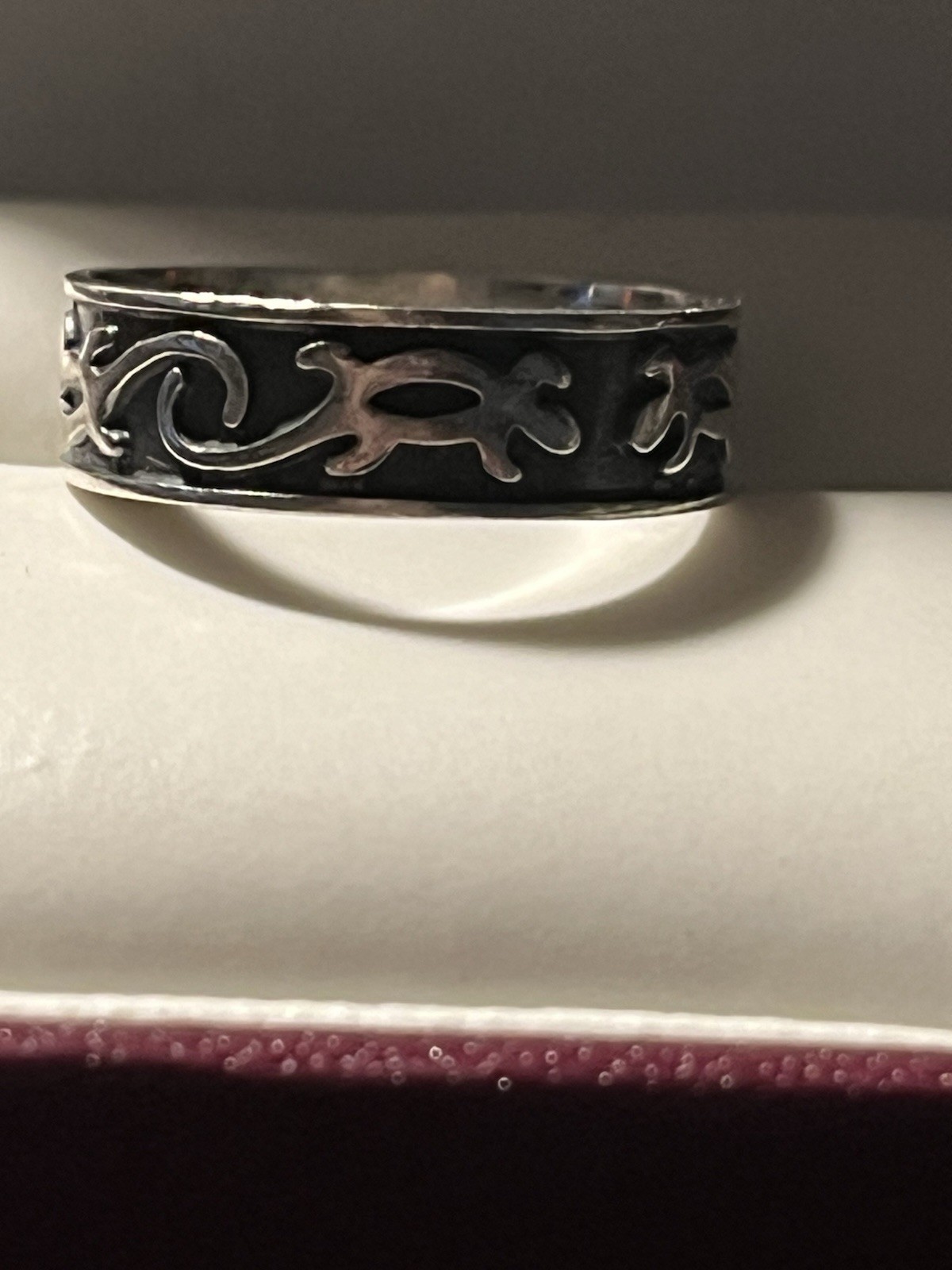 как выглядит 925 Sterling Silver Southwest Design Stamped Raised Band Ring Size 4 1/2 фото