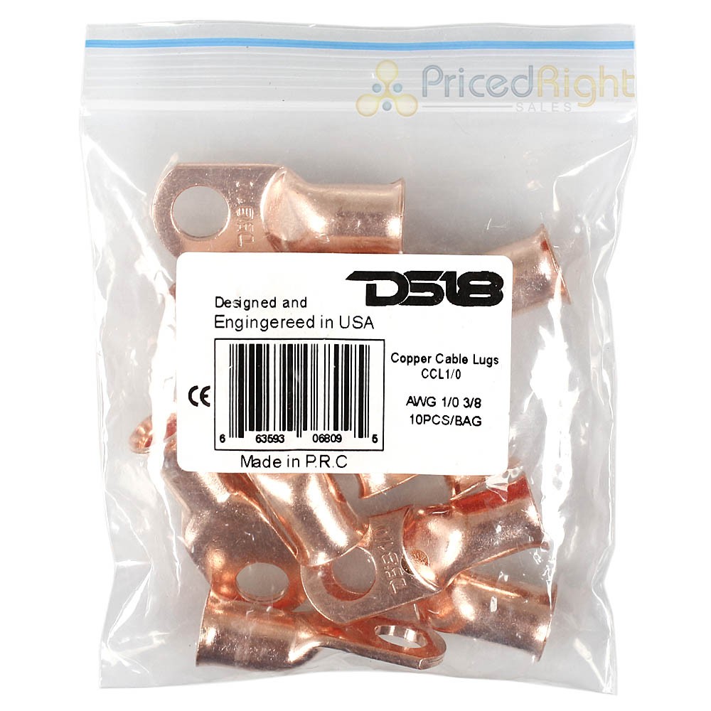 DS18 1/0 Gauge Copper Ring Terminals Lug Wire Connector Pack of 10 CCL1/0 10X