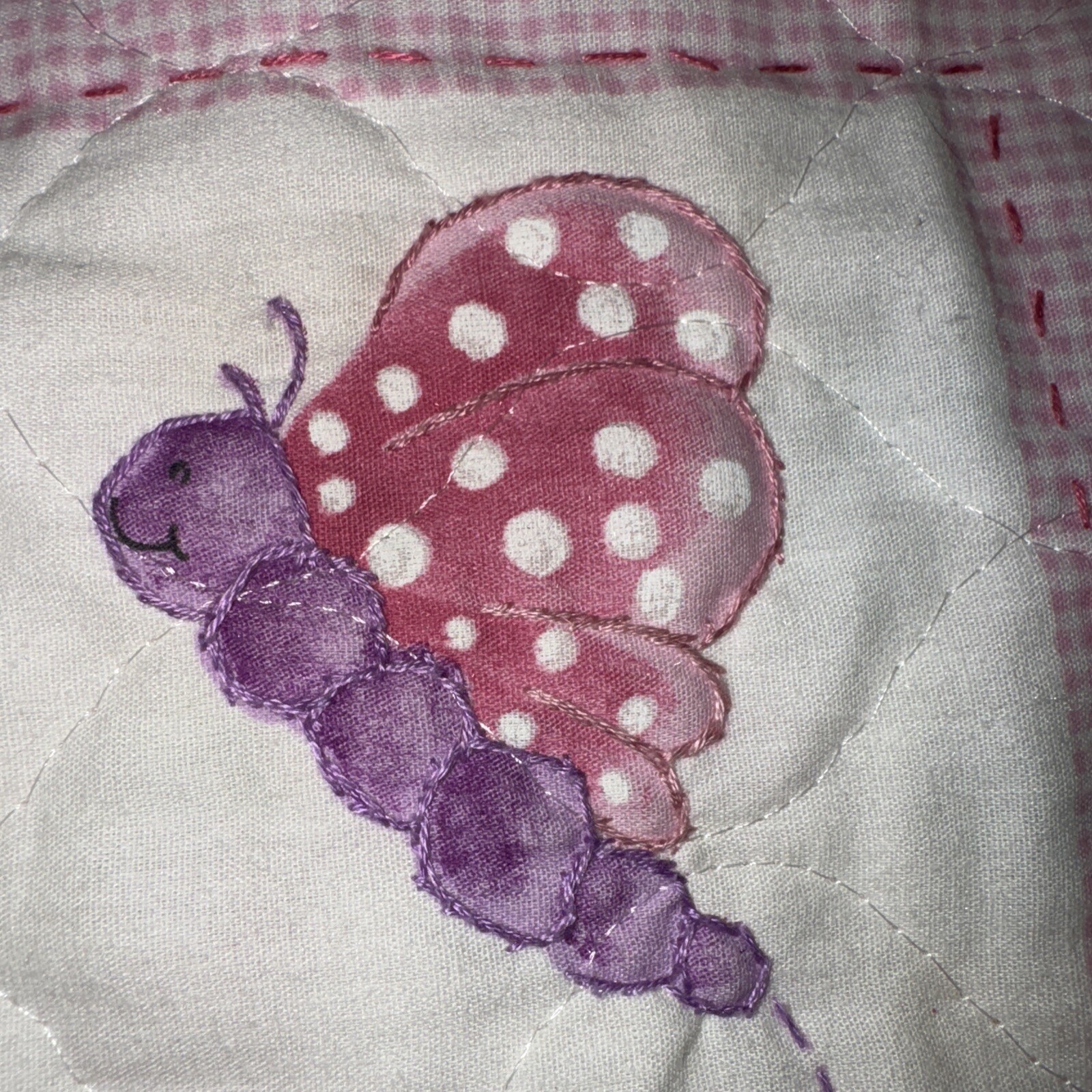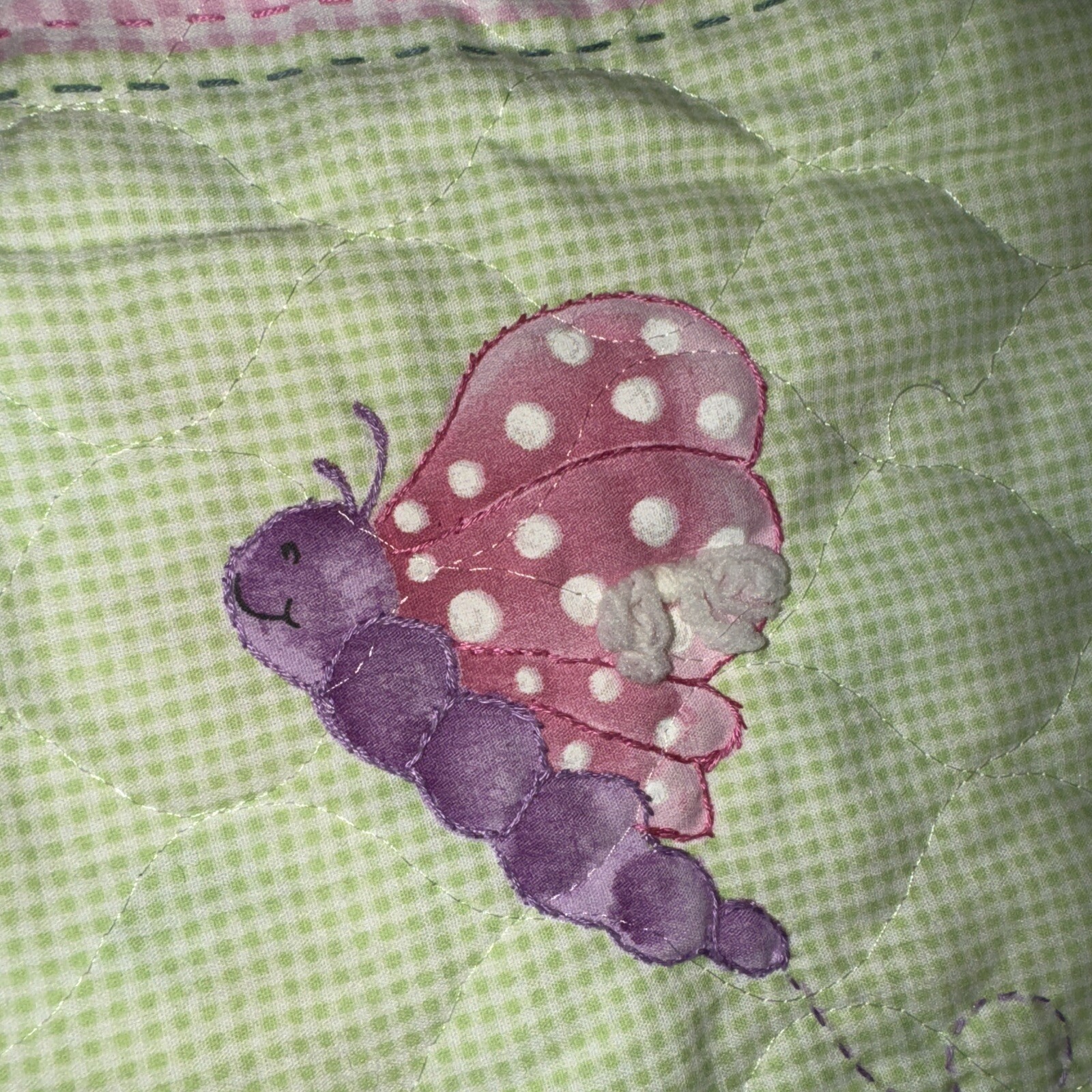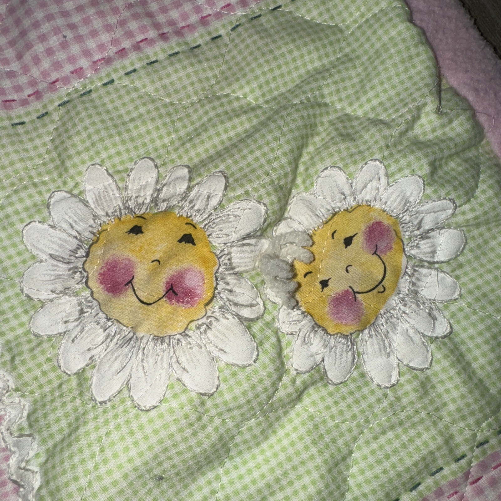 как выглядит Vintage Daisy Kingdom Crib Nursery Quilt Baby Pink Daisy Flowers Butterfly 44x44 фото