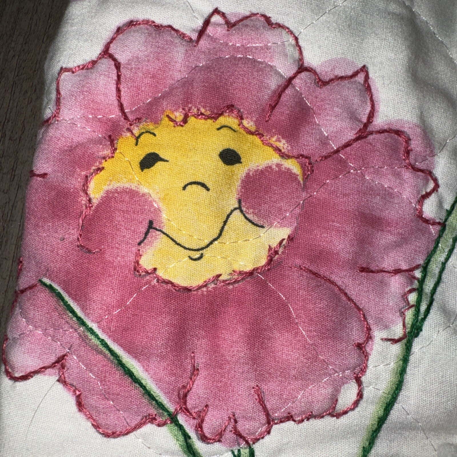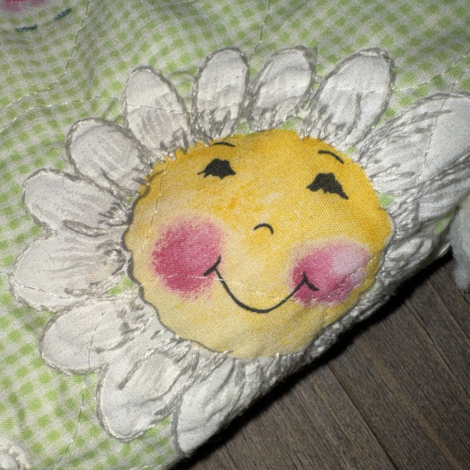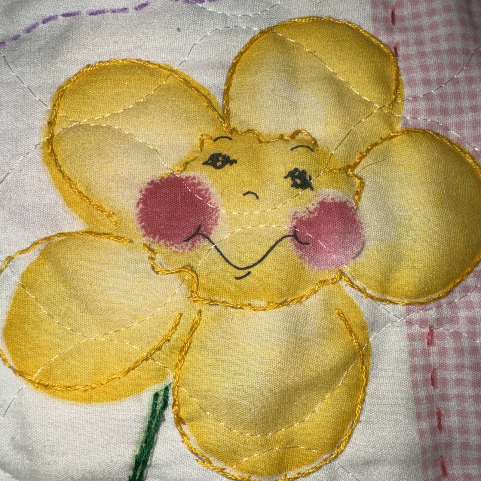 как выглядит Vintage Daisy Kingdom Crib Nursery Quilt Baby Pink Daisy Flowers Butterfly 44x44 фото