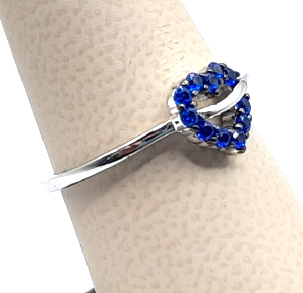 Sterling Silver 925 Bright Blue Rhinestone Heart Shape Stunning Ring Size 8