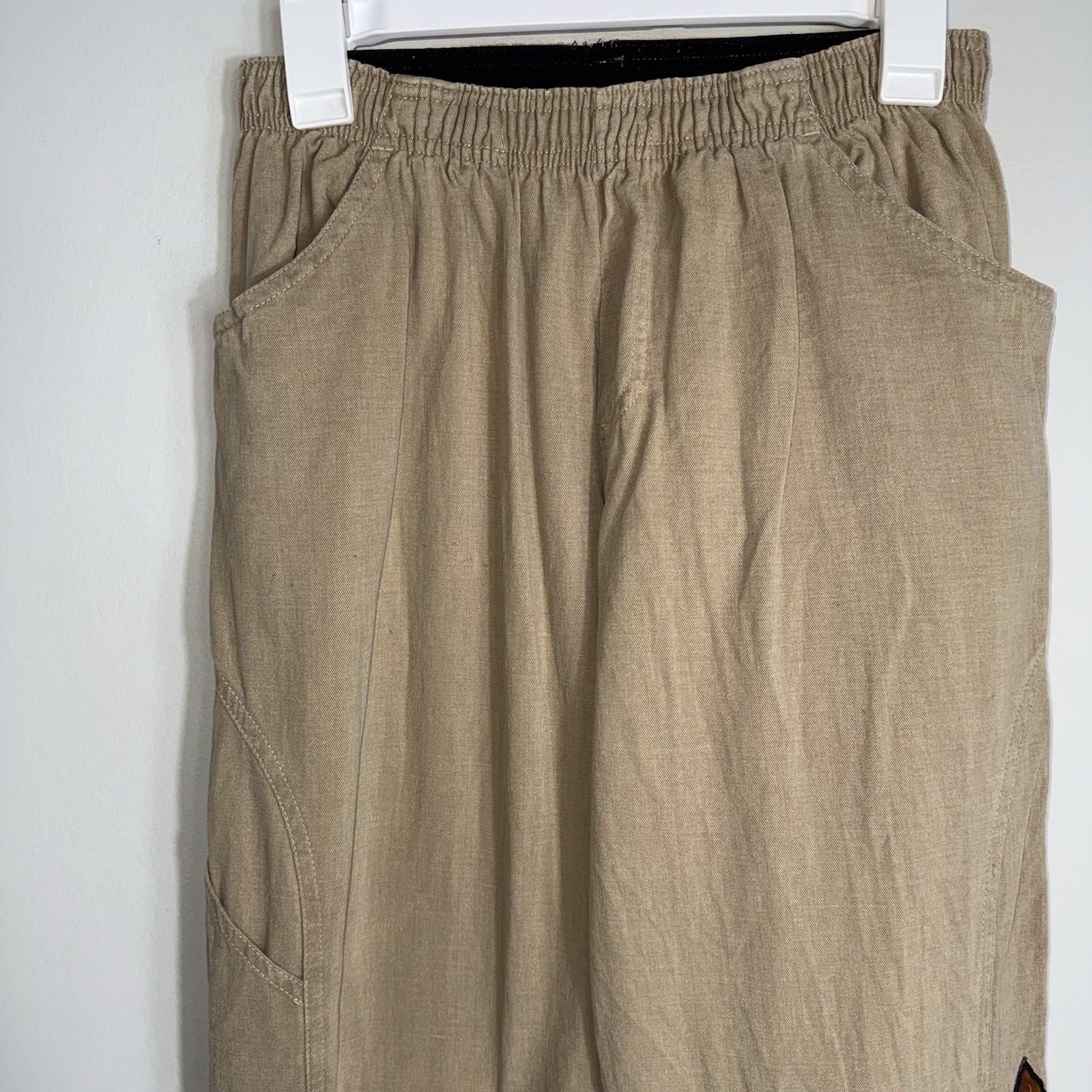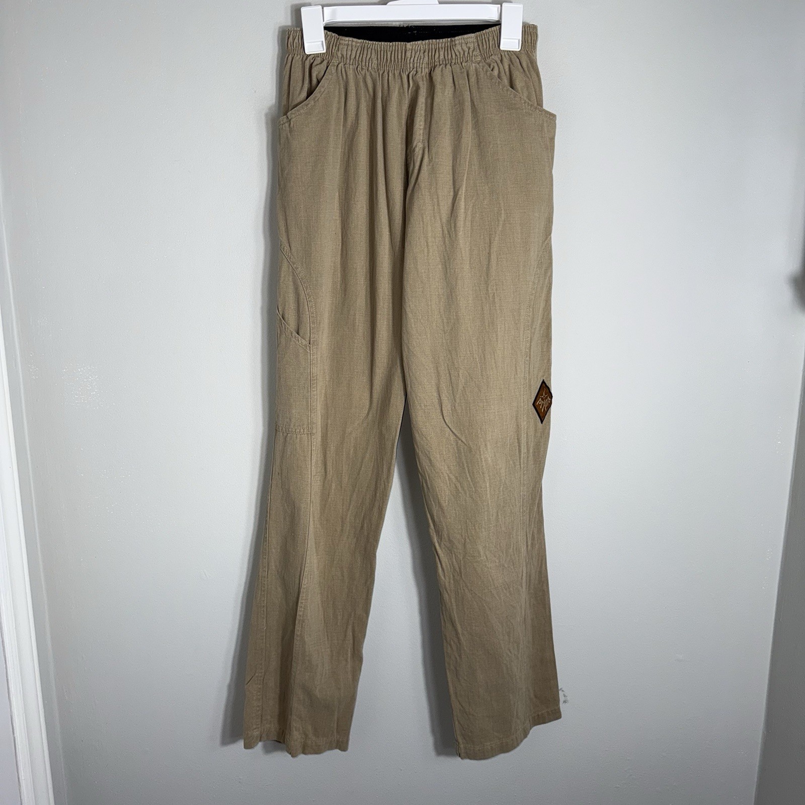 Prana Elastic Waist-Pull On Style 100 Cotton Pants-Hiking Outdoors-Tan-Medium