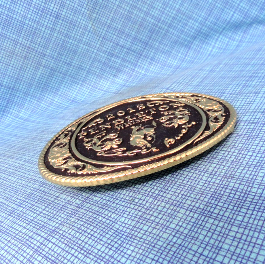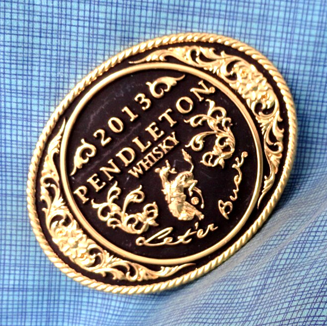 2013 Pendleton Whisky Leter Buck Promo Belt Buckle Montana Silversmiths .NOX983