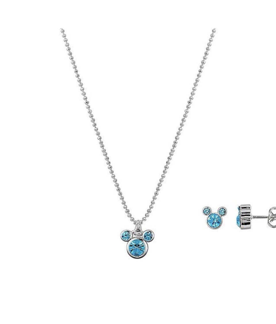 как выглядит Disney Mickey Mouse Fine Silver Aqua Crystal Necklace Earring Set - 50 Value фото