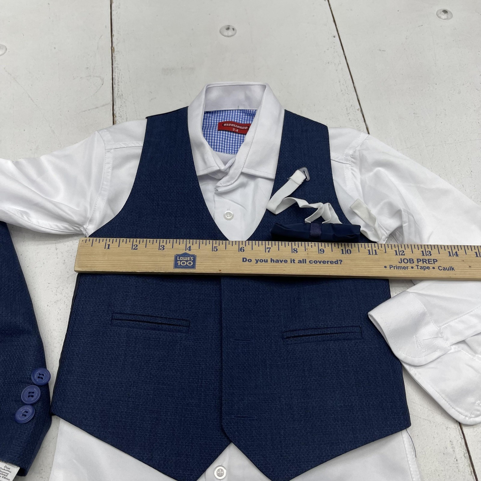 Excellence Boys Suit Set Size 3-4 Blue Jacket Pants Vest Shirt Bow Tie Formal