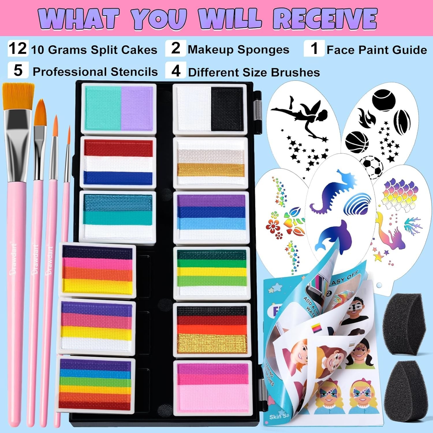 Professional Face Painting Kit for Kids Adults, Split Cake Face Paint Palette...