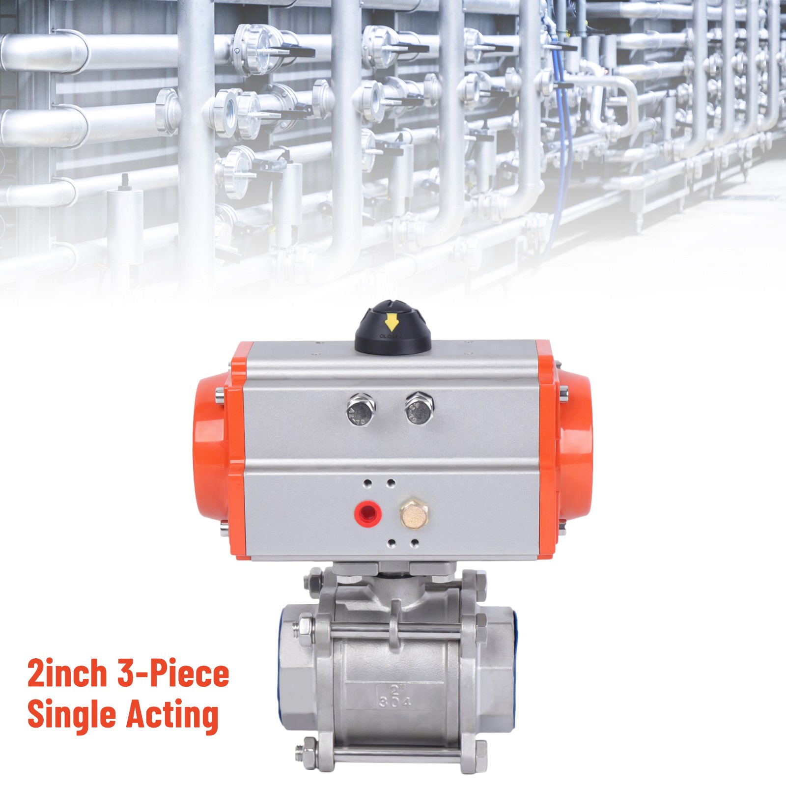• 2" Pneumatic Air Actuated Stainless Ball Valve Single Acting Spring 1000 psi