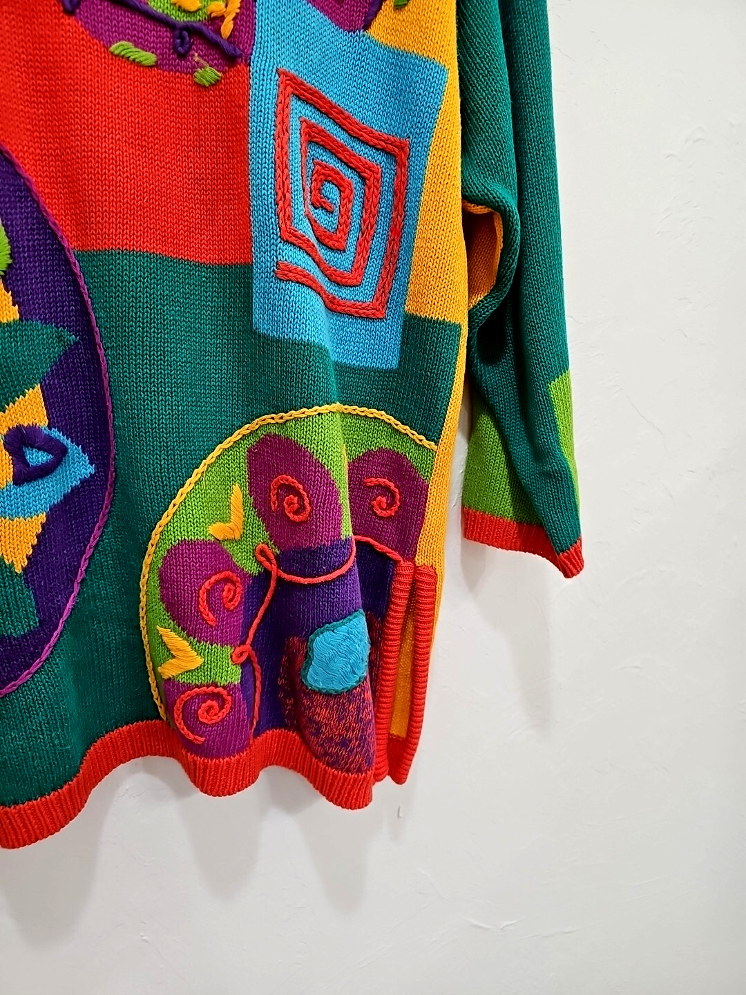 Vintage IB Diffusion Sport Sweater Retro tunic colorful artsy size L 80s red