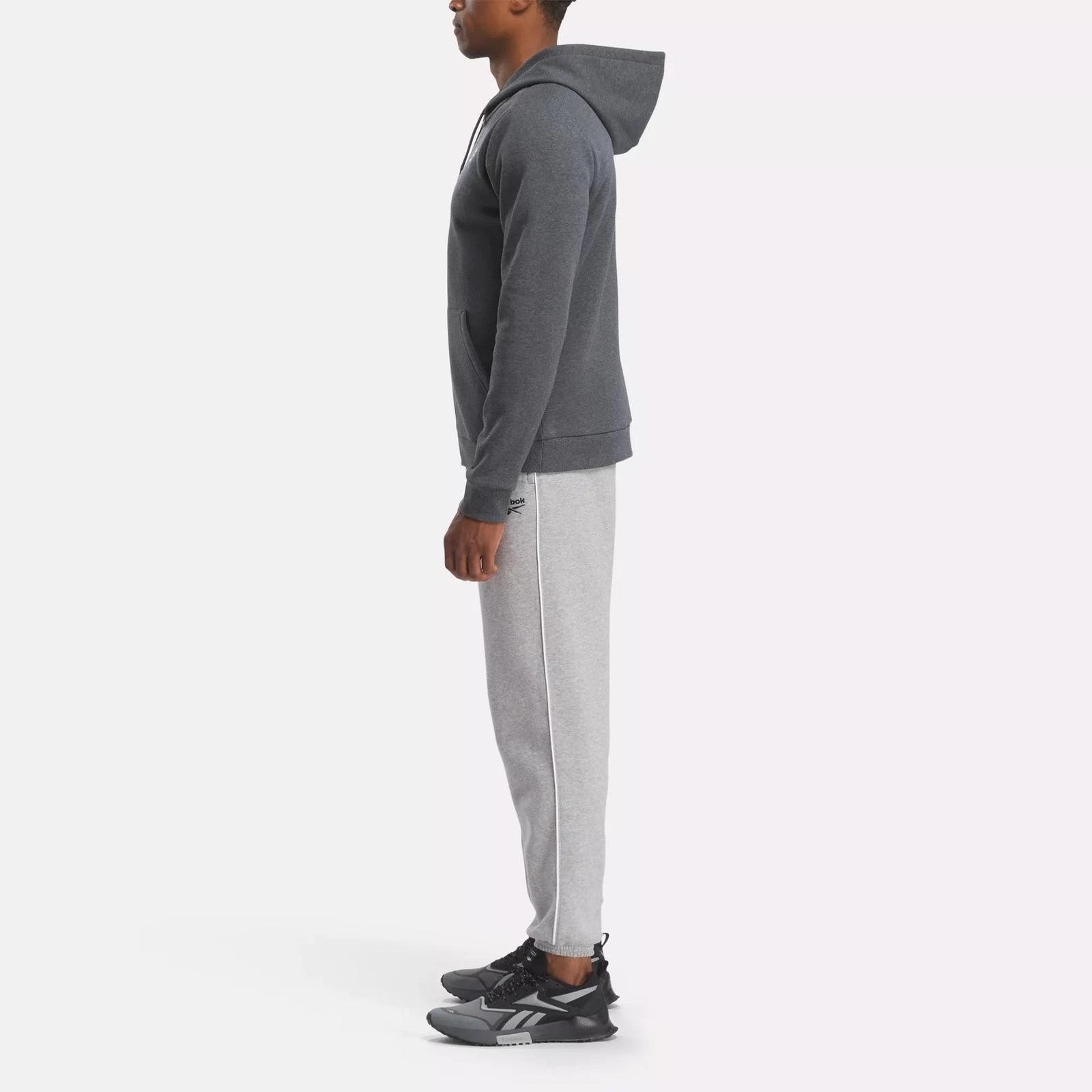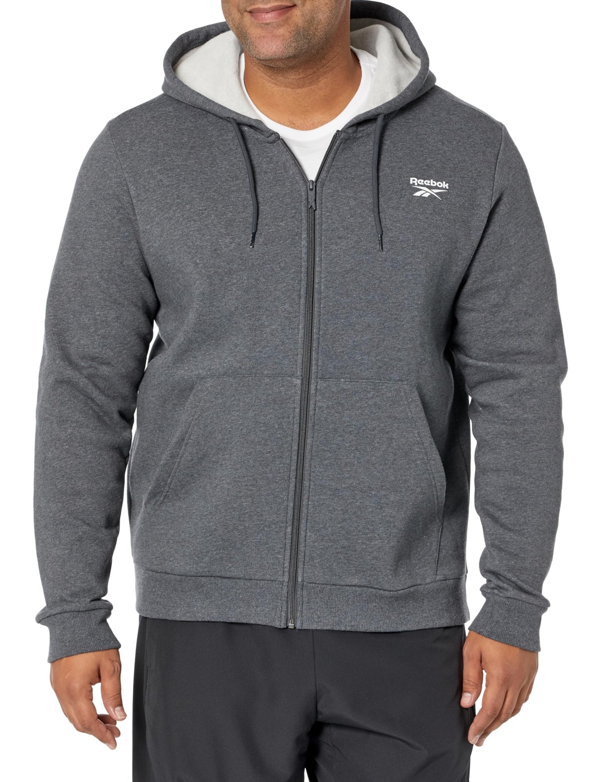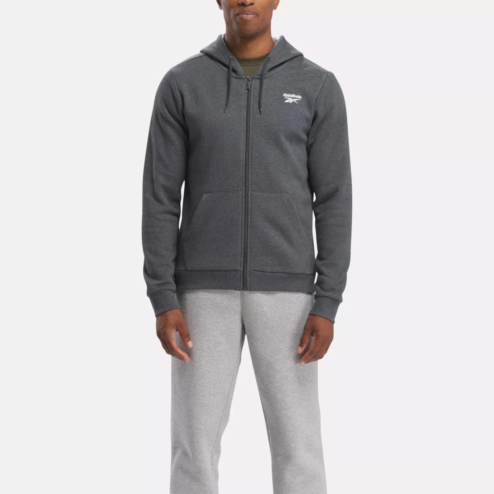 как выглядит Reebok Identity Full-Zipper Sweatshirt Dark Grey Heather Size Small Fleece Logo фото
