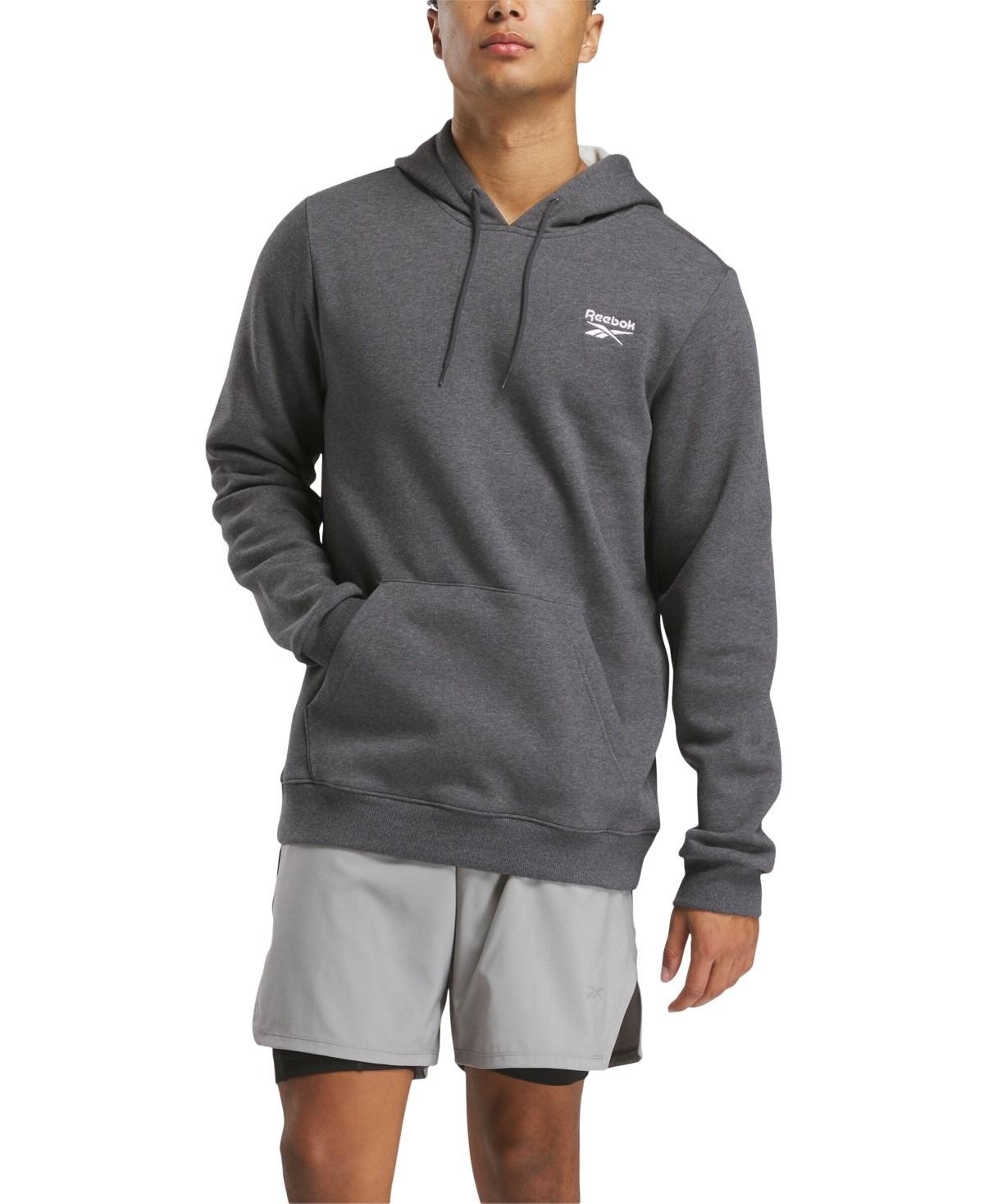 Reebok Identity Hoodie Dark Grey Heather Size Medium Small Logo Fleece Reg Fit