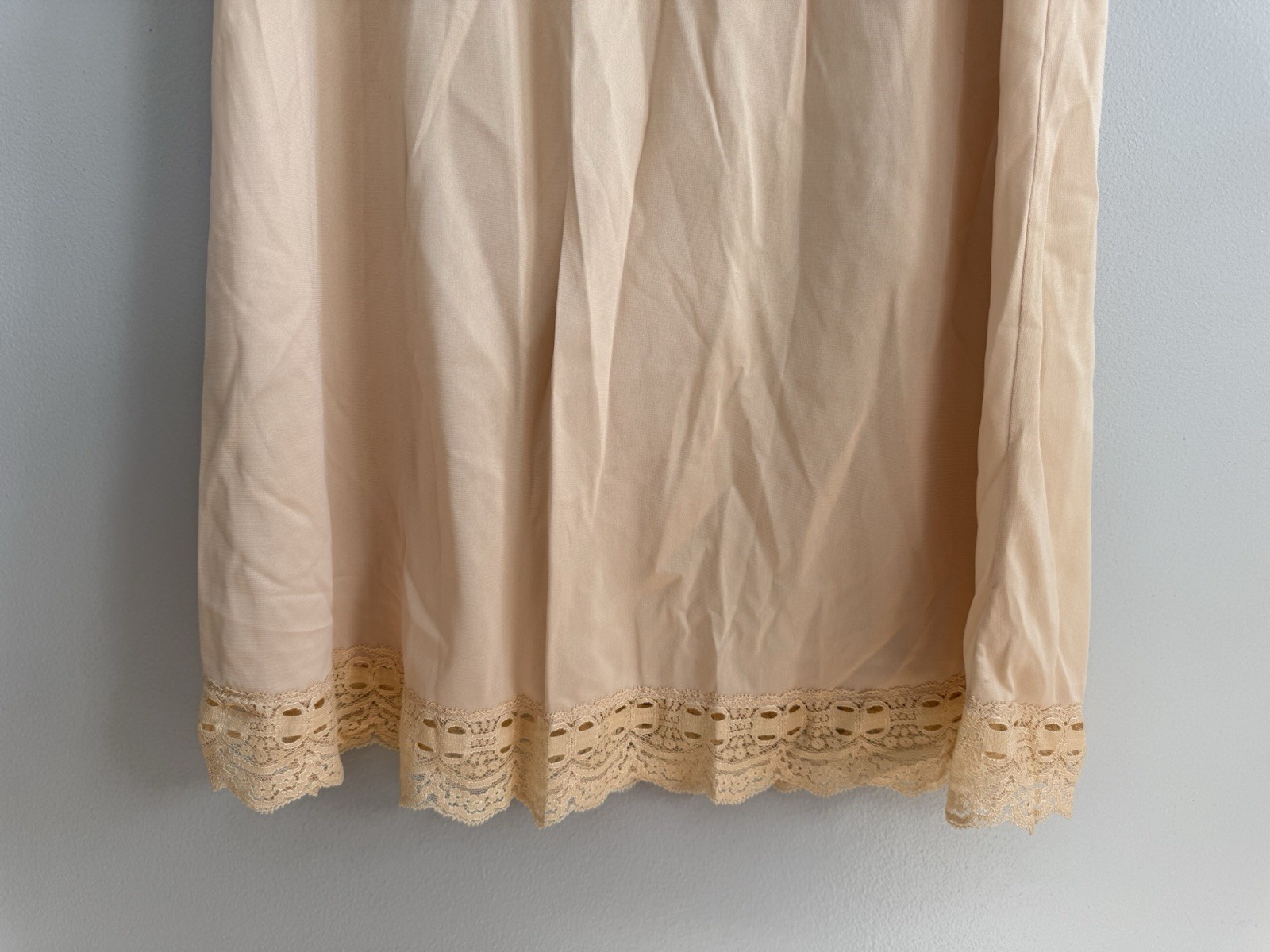 как выглядит Vintage Olga Secret Hug Half Slip Skirt Sz S Lace Edge Style 963T In Color Nude фото