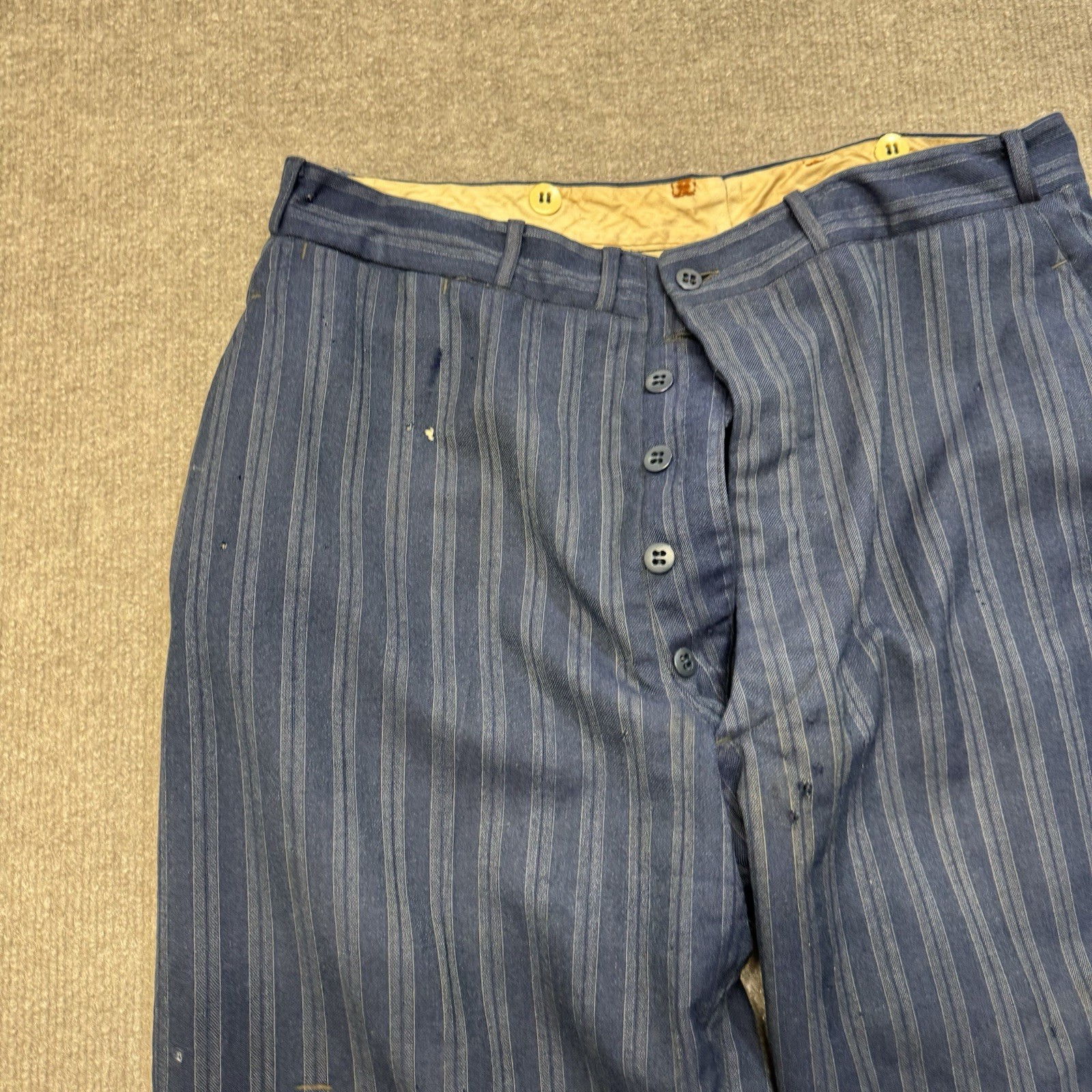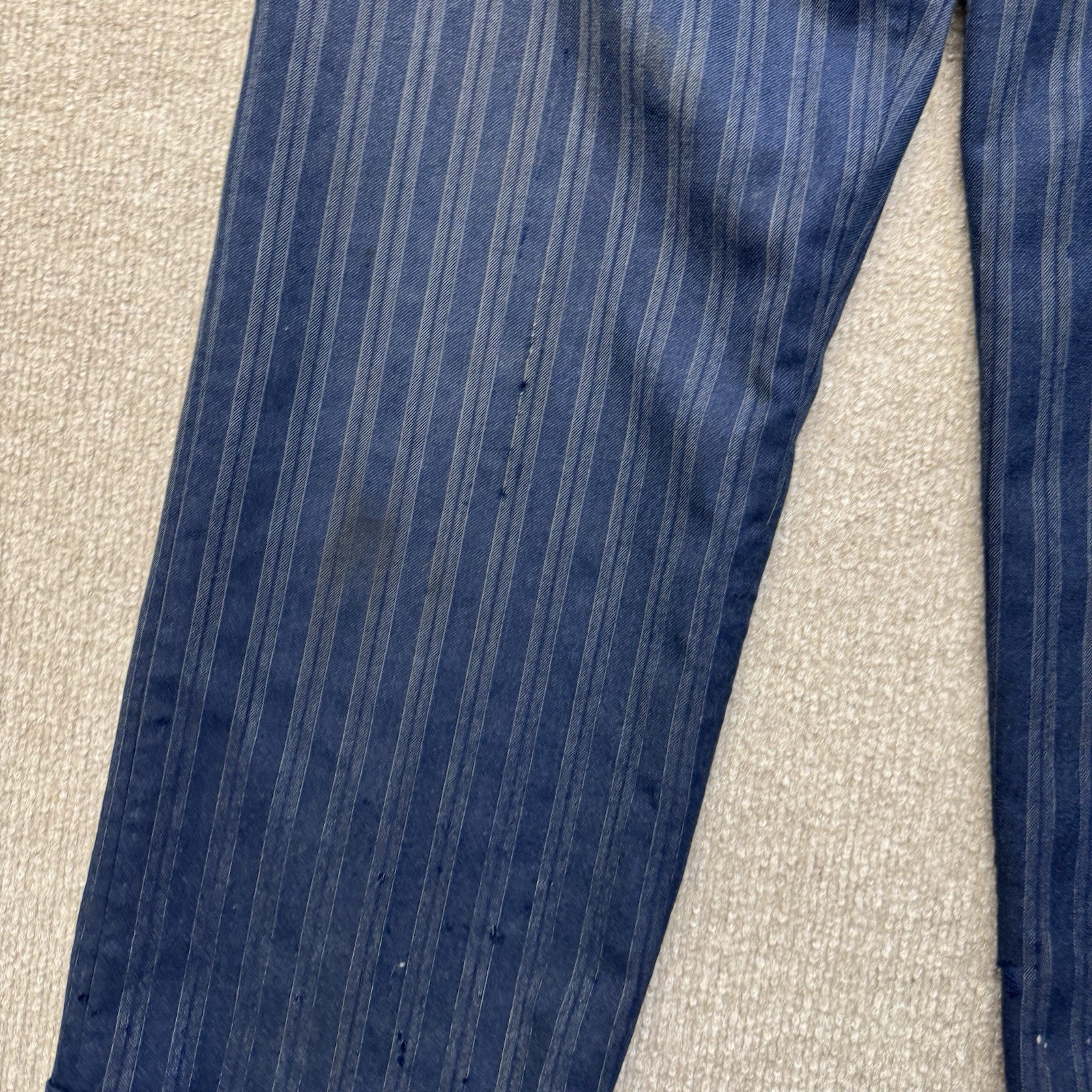 как выглядит Vintage 1940s Blue Wool Drop Loop Pants Mens 32x28 Striped Suit Dress Gab фото