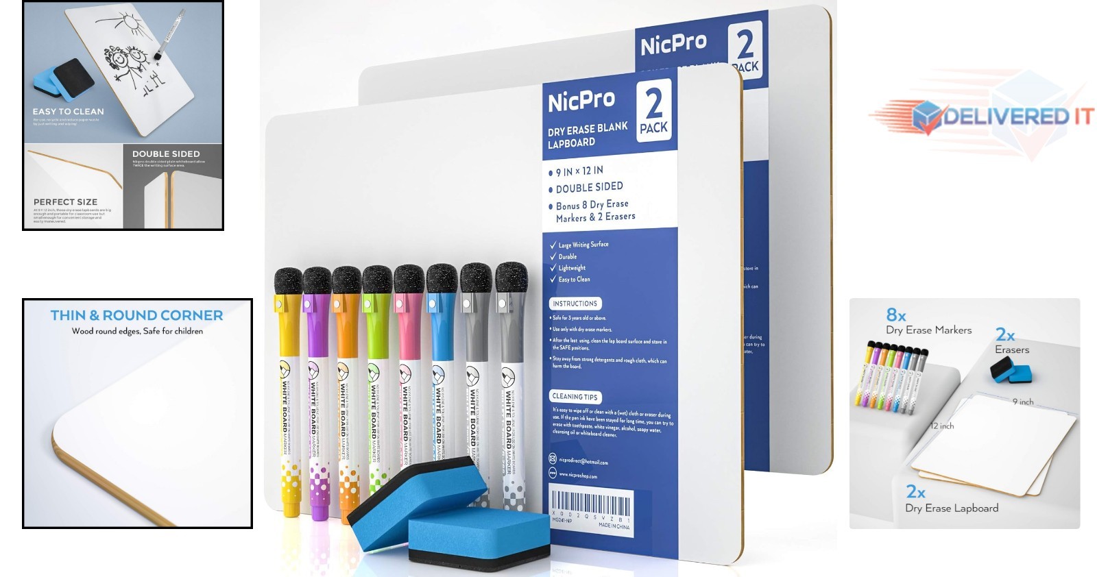 Dry Erase Lap Boards 9x12 Inches Double Sided Student Classroom Pack with Pens