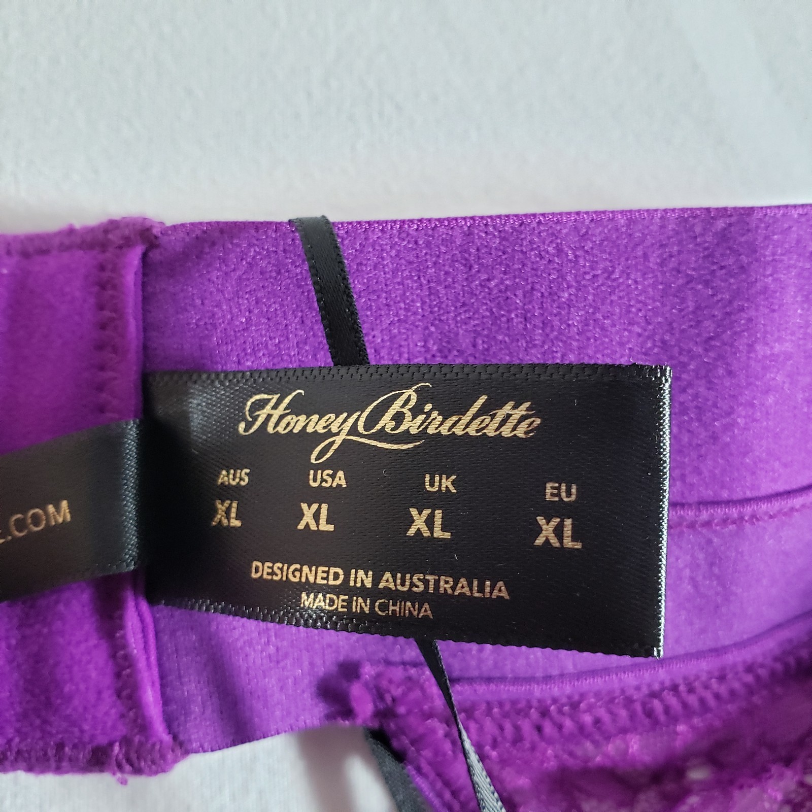 Honey Birdette XL Suspender Garter Belt Orchid Purple Lace