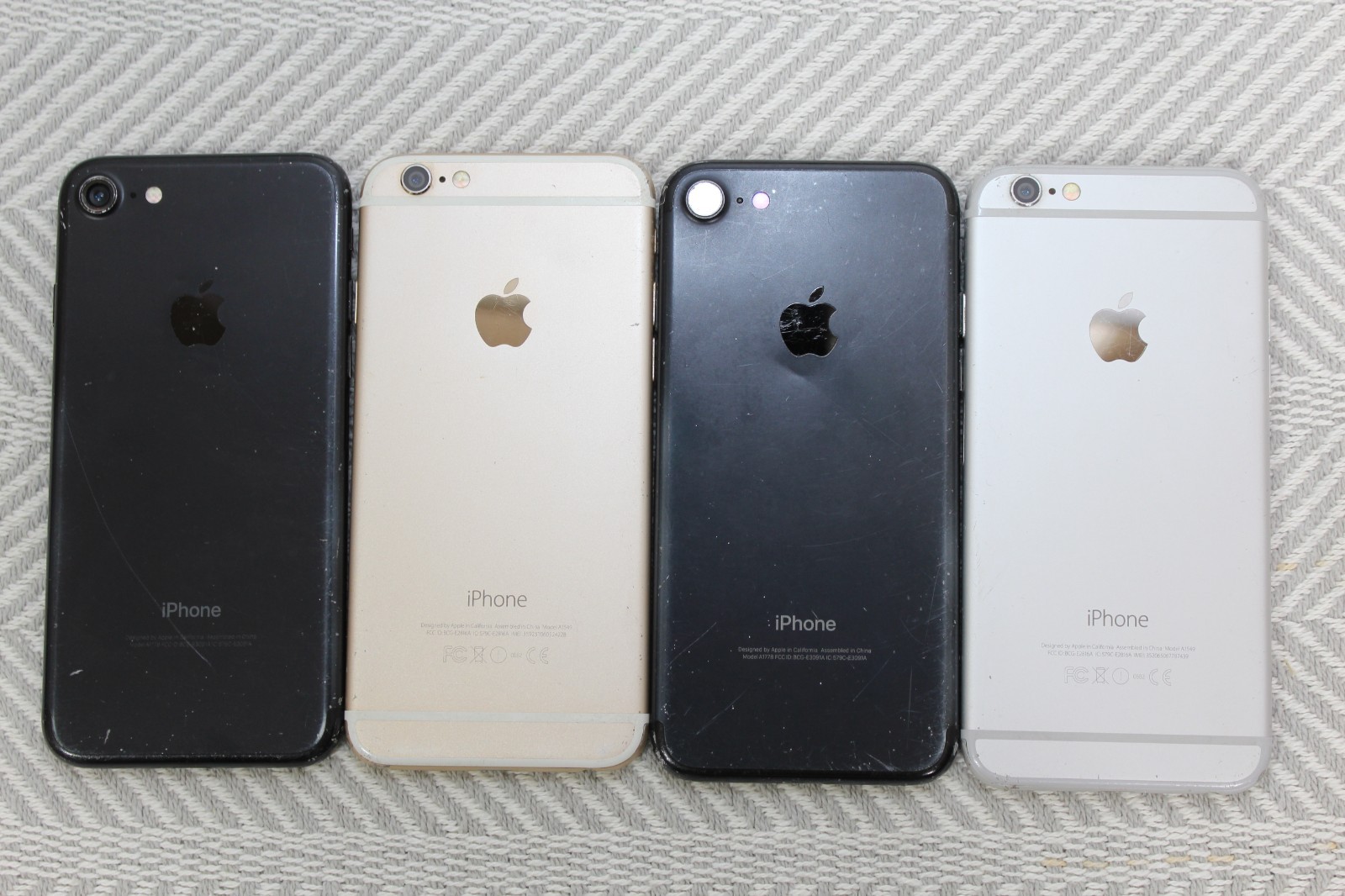 как выглядит 4 iPhones 2 Black iPhone 7s A1778 2 Silver Rose iPhone 6s A1549 фото