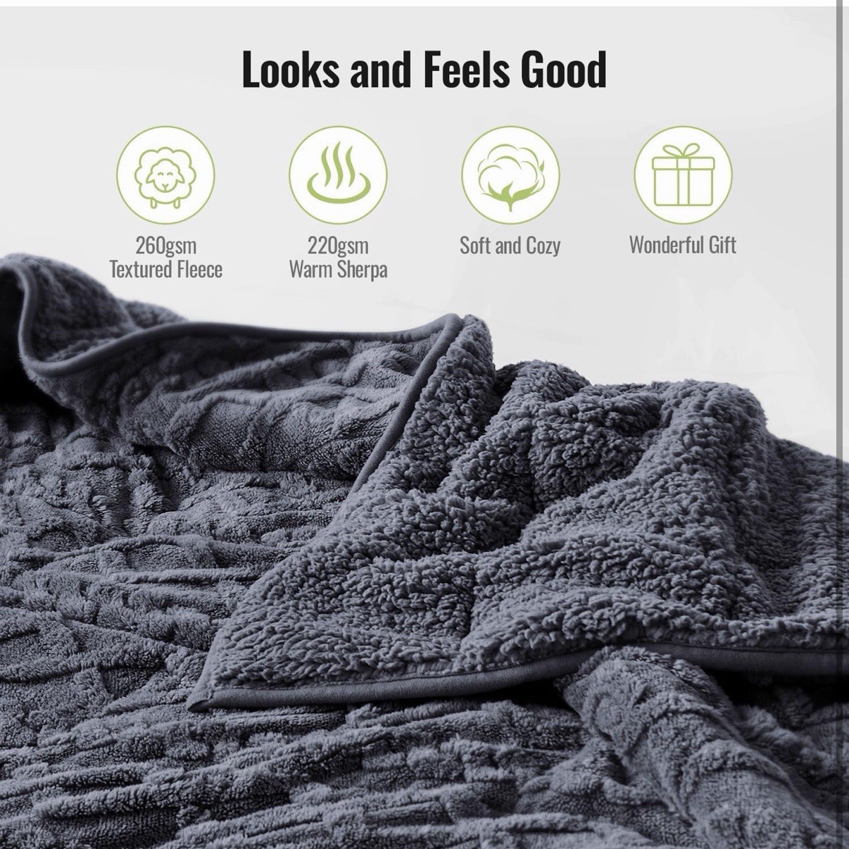как выглядит Sherpa Fleece Weighted Blanket - Sleep in hug - Grey- SEALED 15Lbs Soft, Warm фото